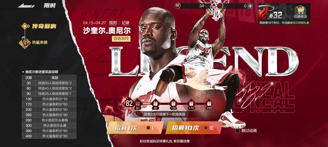 1.热火奥尼尔微氪指南 还是给大家强推一下本次奥尼尔的微氪指南,应该算是微氪玩家开服目前比例比较大的活动了,个人是建议微氪玩家搞个200元+商城的鲨鱼特惠礼包,基本是200元即可出一个奥尼尔。 奥尼尔目前的身价已经大大超出了辣椒的预期,由于是第一个历史球员的缘故,预计身价在五一新球员出来之前会疯涨。目测热火鲨的价格会不会涨到600W-700W,如果按照这个比例来算的话200元即可换6500W(税前