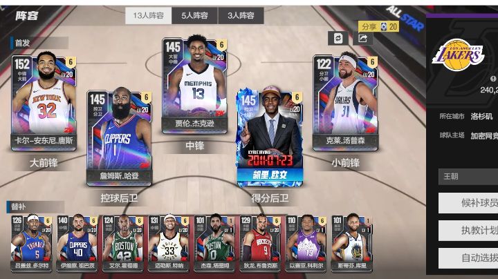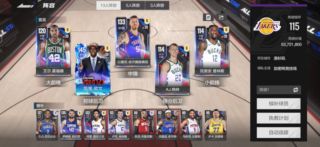 之前我的阵容缺陷很明显,比如只有一个用着不错的持球主攻手时刻欧文,柯林斯虽然空接扣篮很爽,但是底角抽烟踩线,投篮包慢,2-3号的投射不稳,用的里弗斯多尔特,艾克萨姆,约什格林,狄龙这种偏平民的甚至难民的。可以说当欧文下场后,我的进攻基本就很难受了,并且欧文打1也容易被点名。 球员数据更新后,我对比考虑了很久,首先是升级1号位,要考虑的有以下几点,有运球好手能推人,模型不能太小,持球三分能力不能差,