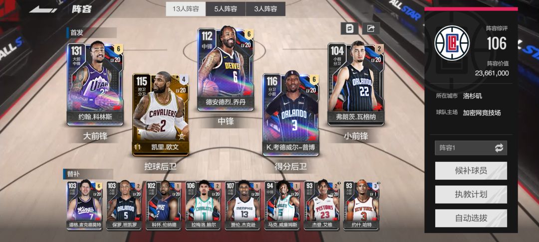 🌟首发推荐欧文、鲍尔、杰登、巴姆、小乔丹,后续可以换卡 🌟 欧文模型还是比较小的,控卫分位如果用欧文的话,另一个位置尽量选大模型,不然不好防守。小乔丹是性价比很高的硬c,平民可以考虑入手。控卫推荐鲍尔、坎安宁,大前锋推荐阿隆戈登、艾尔霍福德、巴姆。 🌟 罗斯用来投三分确实好玩,但是防守挺弱的。 🌟🌟🌟 平民党不建议百万级别的球员,不好培养。 #新游攻略局 #平民攻略 #开荒 #开荒攻略 #游戏