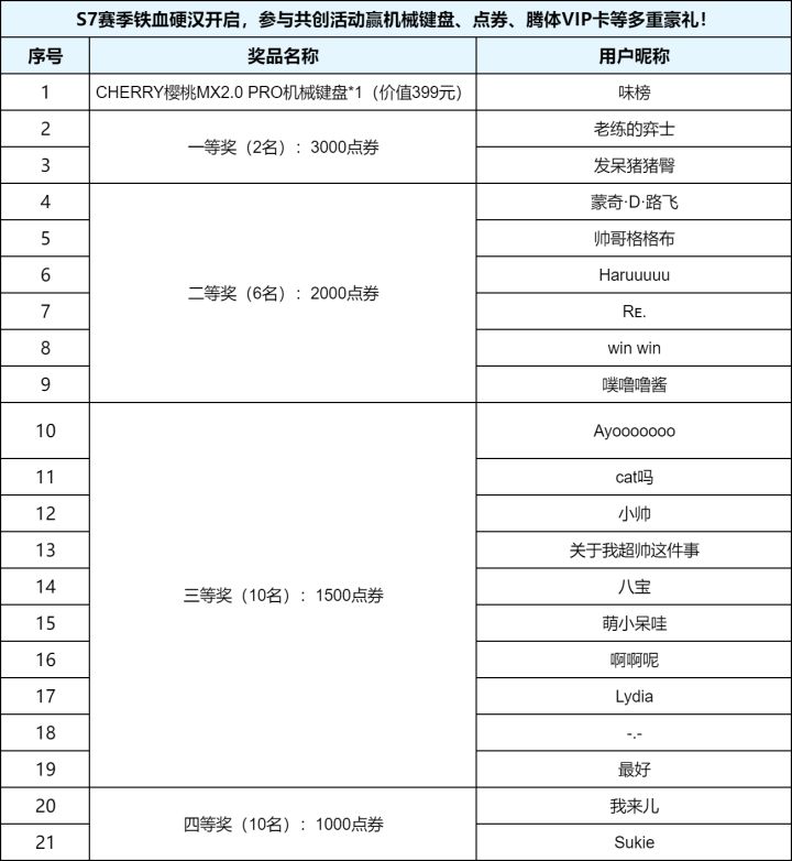 【已开奖】参与共创活动赢机械键盘、点券等多重豪礼!