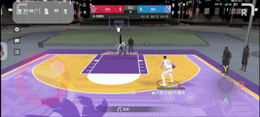 四步实现滑步抛投 制裁蹲坑C: 第一步 三分线外按住右上角R键进入背身 第二步 保持背身状态 且左摇杆处于非加速状态 挪到三分线内一步距离 第三步 仍然保持背身和非加速状态 左摇杆滑向篮筐方向 第四步 右摇杆向下拉到底 即可触发滑步抛投 #nba2k手游 #美职篮全明星
