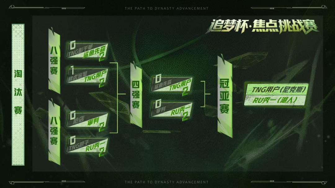 各位全明星们,随着追梦杯赛事进入白热化阶段,半决赛在昨晚结束,决赛队伍已产生。四位参赛选手使用对应的现役队套,进行BO3赛制的王朝对决,最终TNG用户(尼克斯队)与RU秀一(湖人队)成功晋级总决赛!接下来让我们来回顾下昨日精彩的比赛。晋级之路东部晋级者:TNG用户(尼克斯队)西部晋级者:RU秀一(湖人队)东部球队战况鲨鱼先森(热火队)VS TNG用户(尼克斯队):TNG用户晋级第