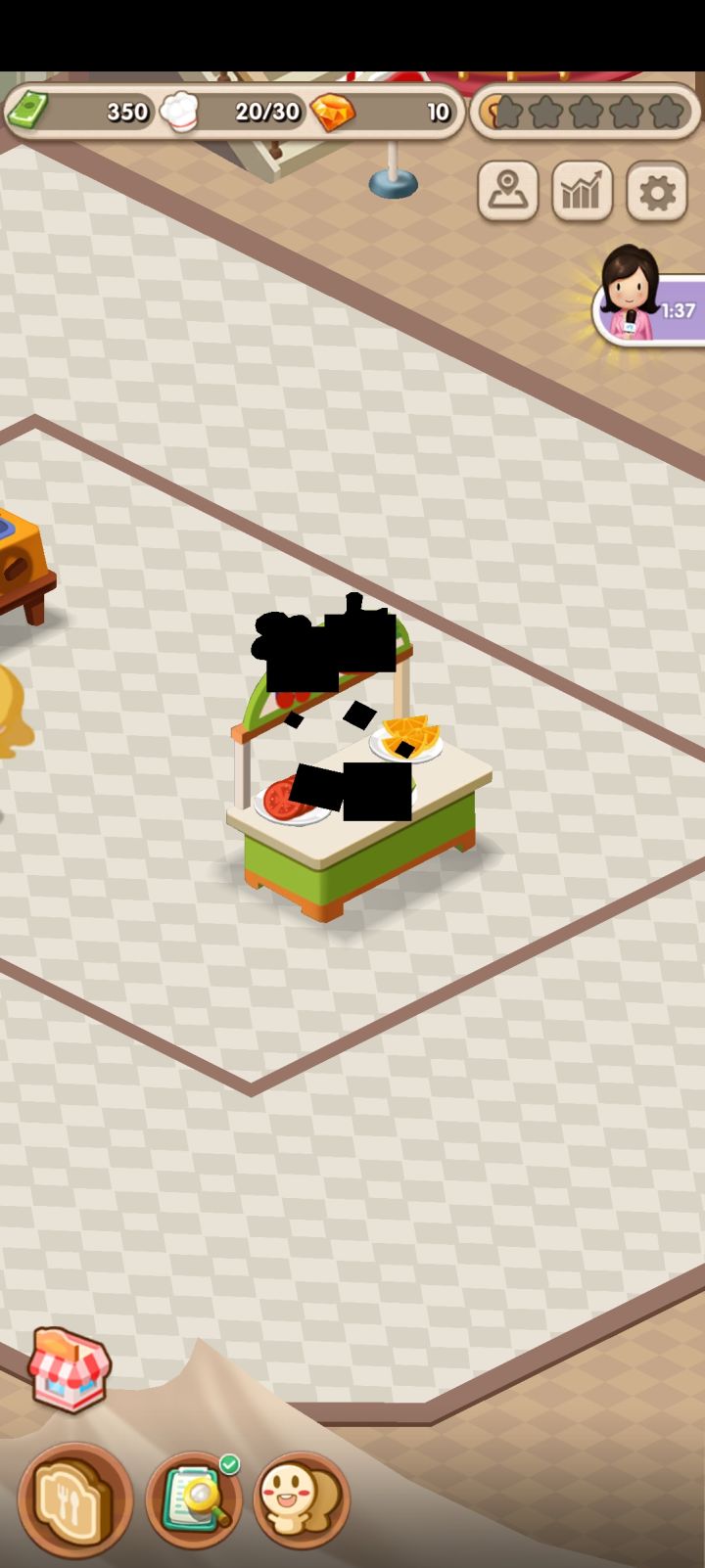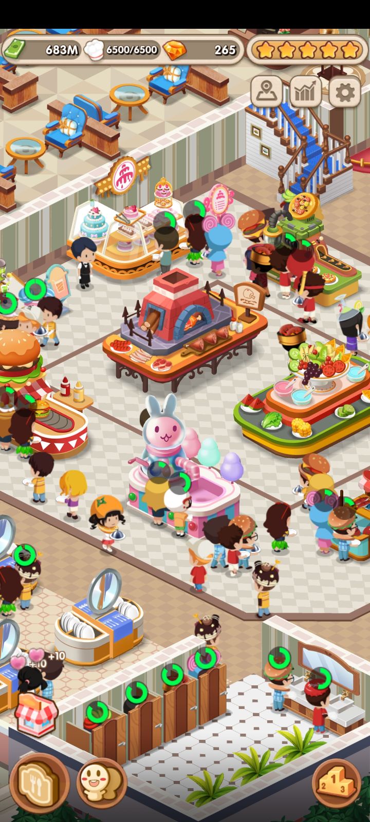 Q版/开店/划分区域/摊位可升级/头顶圆圈读条,这种类型的游戏我玩过很多了,这个也非常模板,玩法依旧中规中矩,没踩我雷。不过这款游戏的设定稍微有点意思,除了自助餐的设定以外,还有恋爱配对的成分在里面,比以前玩的纯餐厅纯旅馆纯游轮要更有意思一些。