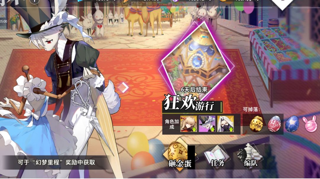 梦七公测的第一个活动异国的幻梦开启啦(≧ω≦)/整理了一些小tips一起来看一下吧~ 本次活动分为活动副本、日常任务、里程点数成就、开金蛋几个部分。 1.进入活动副本需要的特殊体力为胡萝卜,胡萝卜随时间自动回复,每9分钟回复一个。通过消耗我们正常的体力也会概率获得胡萝卜,每天上限为90个。(啊……好缺胡萝卜……) 2.活动副本会掉落粉色的泥浆T裇(里程点数)和蓝蛋,有概率会掉落彩蛋。boss关卡需