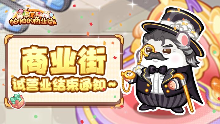 各位店主们好呀~经过这一段时间各位店长的努力经营,商业街要比之前都热闹了许多,小仓仓也认识了许多新的鼠鼠朋友们。不过天下无不散之筵席,商业街试营业也是时候要告一段落了。本次试营业结束时间为:2024年12月30日23:59请各位店长大人注意游玩时间,我们将在测试结束后关闭服务器,玩家将无法登录。本次测试为计费删档测试,我们将于测试结束后清除所有游戏数据,还请各位店长注意。各位店长在测试