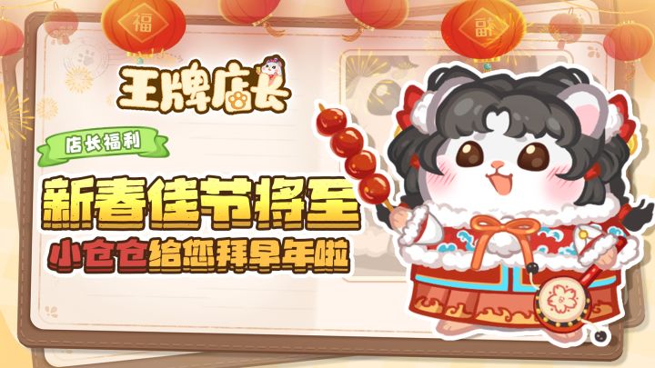 各位店长们好呀~还有一个星期就到春节啦~在这里小仓仓先祝各位店长在新的一年里吃好喝好 心想事成财源滚滚 发财顺利当然了,这么重要的节日怎么能少得了春节福利呢快来留下春节祝福抽取福利吧【参与方式】在本帖下方评论区内留言留下新春祝福【活动奖励】小仓仓将随机在评论区抽取2名店长送出《王牌店长》限定周边徽章*1【活动时间】即日起-1月29日【活动规则】1. 同一ID不可多次回