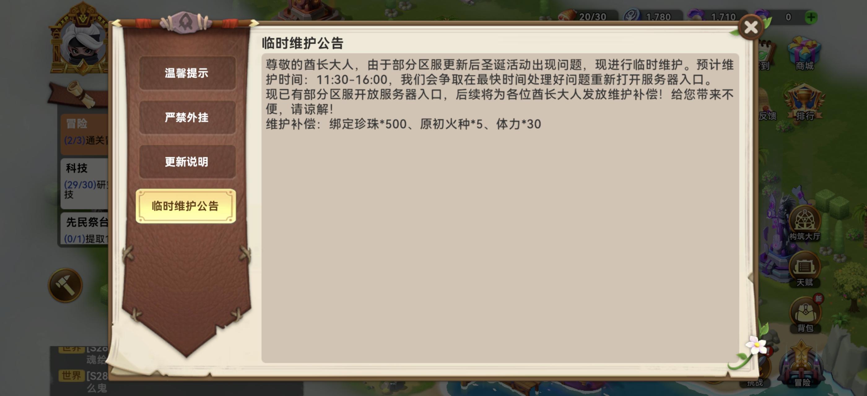 各位亲爱的勇士: 为了更好地游戏体验,我们预计在12月29日9:00-10:30进行停服更新优化,实际维护时间可能会根据工作进度提前或延后。 精彩的部落联赛即将正式拉开帷幕!同时,强大的英魂殿也已加入到部落中。 另外,我们预计在1月15日开启S1赛季!并已准备了丰富的内容与多样玩法等待大家去探索。更多相关消息将于近期陆续公布,英魂系统详情可看噗酱的官方介绍~ 本次更新细则如下: 英魂