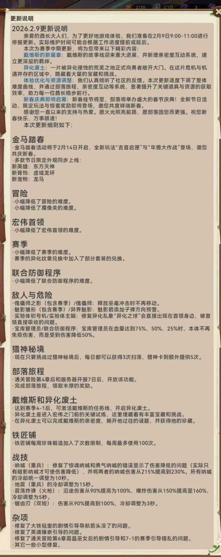 各位亲爱的勇士:策马扬鞭赴山海,春风得意伴君行。明天就是洋溢着节日氛围的二月啦,酋长马年春节活动也即将开启! 山宝在寻找小野女的路上听到了“暴动”“需要尽快召集人手镇压”等议论,还看到了大祭师的帐篷里坐着一个气宇非凡的神秘人物,据说是来镇压“凶险异兽”的......部落到底要发生什么事情了嘞?(疑惑) 对啦,小野女表示要在赛季冒险之余为大家送上祝福礼盒,请大家注意查收~✦2月日历礼