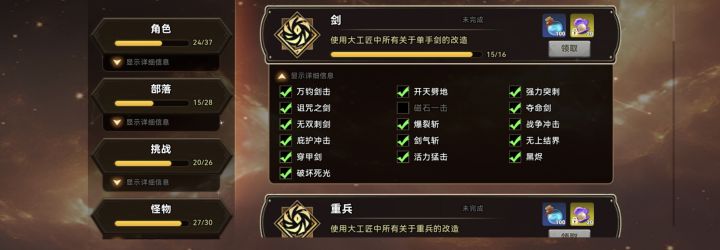 如图,成就就差三个了,单手剑的磁石一击是什么战技才能出。重兵的英勇怒击和灵魂之怒,是什么战技能在大工匠中选择