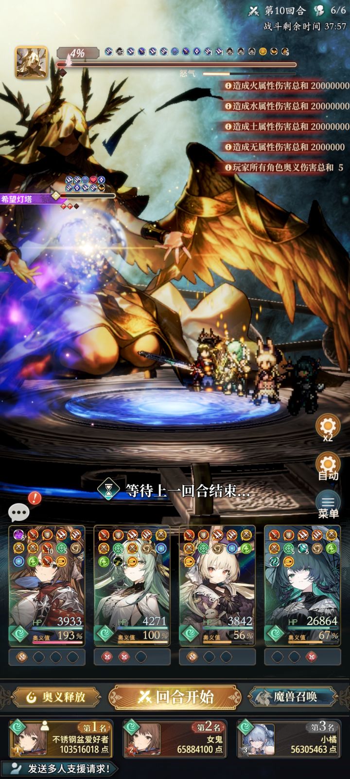 ‘’惊心动魄‘’的slg结束之后,只能猎猎金了本阵容无限定武器魔物需求,15秒左右撤退技能轴只需两键,伤害在620w-700w+浮动阵容搭配:渡放最后吃buff武器盘:依旧有就多带奥义附魔火剑,魔武技伤附魔魔物:没有多的火龟带其他150魔物也可以,确保渡的血量超过3w重点:检查人物血量是否超过3w技能轴:加奥义技能给零号角色也就是主角实战演示:这套阵容1t主角200奥义,