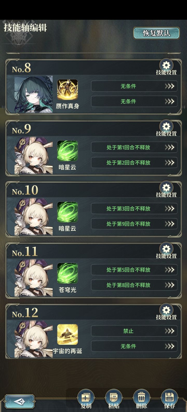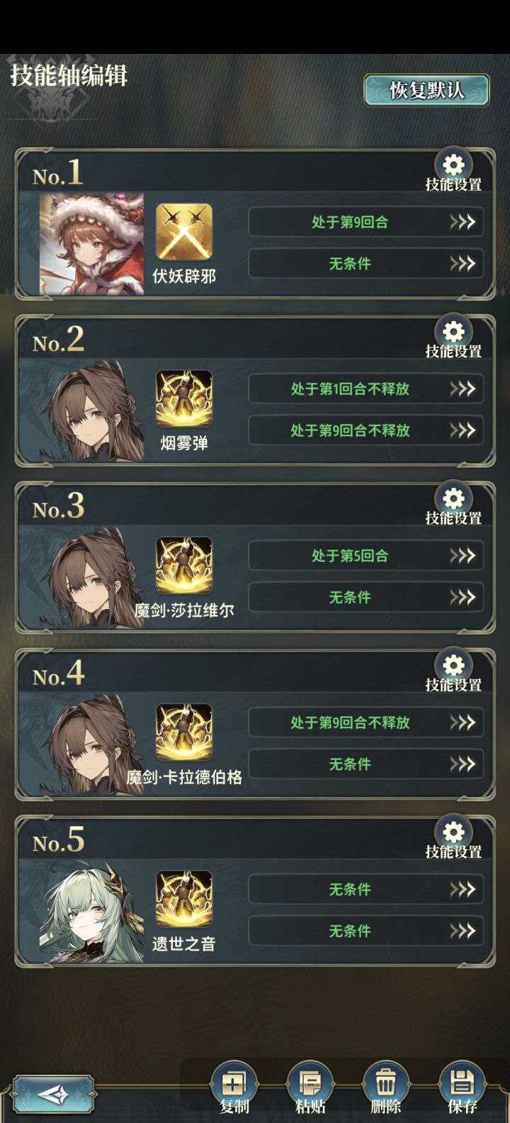 本盘子在确保生存的情况下,会比坚守琴盘出伤快且造价低,适合晚间自动烛母效果:武器盘:阵容:魔兽:刻印:(涅布拉刻印换成天使的)主角 攻击 属攻 奥义 (老王套)和音愧 :生命 属攻 技攻 (目前和音愧有bug所以带了技攻)属贵套捏布拉:天使套刻印没有图片奥菲莉亚:攻击 属攻 奥义技能轴:附魔:光琴带技伤