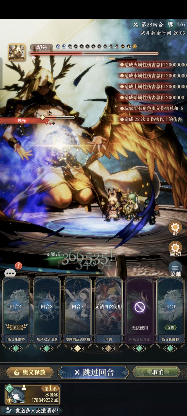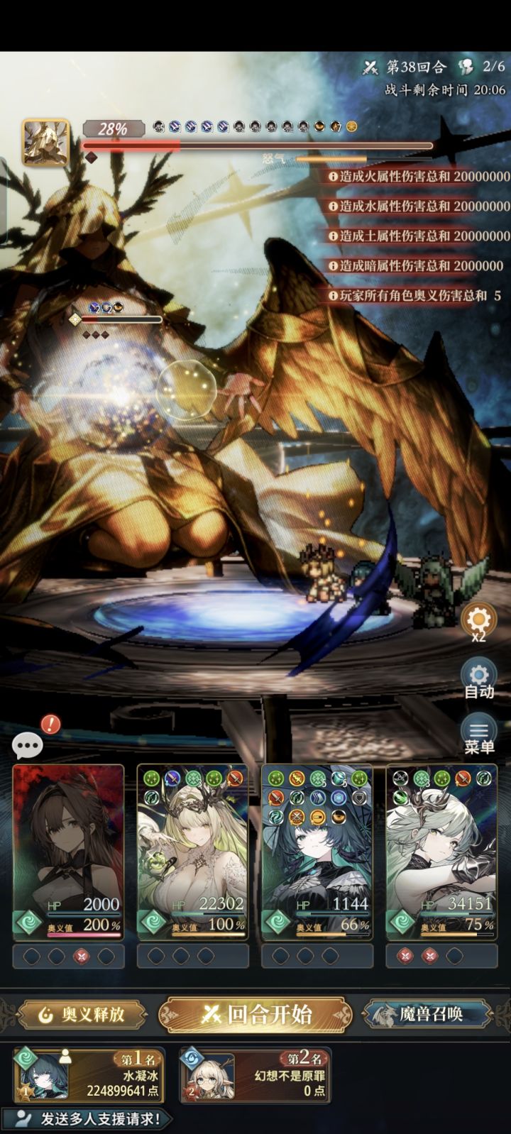 欲望泉副本掉落的神属性武器,正好可以组个水老王过渡盘,只需要消耗一个金钢升神武到20级,已实战调整过了,无天人版,有100级天人,可以前排天人、岛主、奈法,后排左娅、欧若拉,轴只需要改对应角色的,奈法刷新岛主技能,刻印选择水老王,2号位主属性3连击,我只提供一个可玩性思路,仅供参考,年兽和光魔兽初始等级就能用。