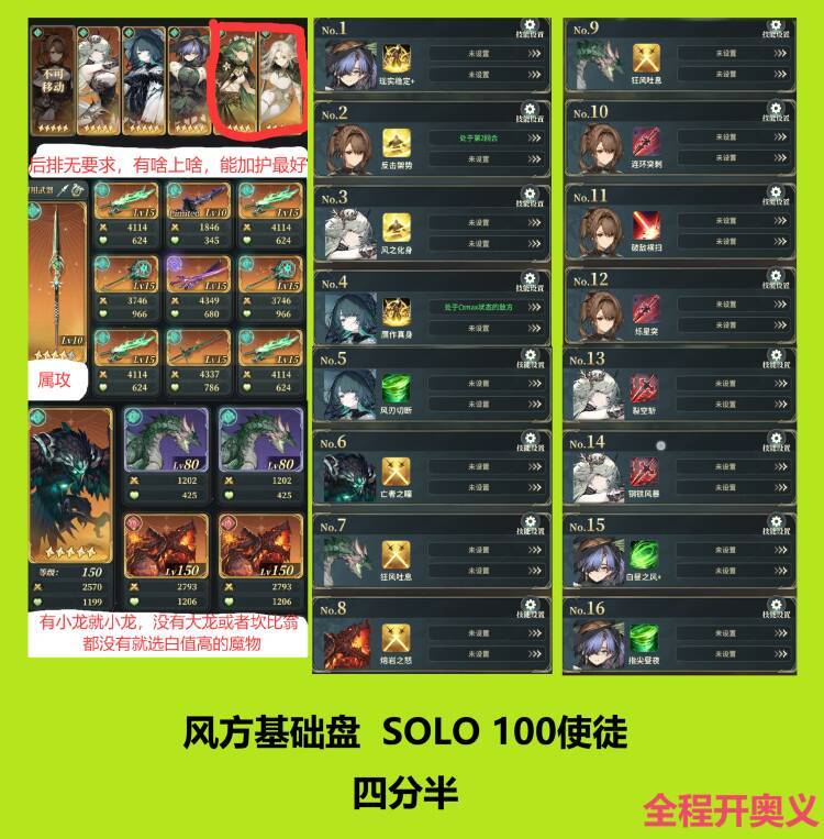 角色配置:先锋主角:主要输出兼次要抗伤路加:次要输出兼削弱和暴击拐奥菲莉娅:核心防卫兼攻击拐斯文托维特:次要输出兼功能奶首先是队伍的核心技能: 奥菲利亚的二技能可以带来高额的防护效果,当boss进入满豆状态时,可以通过释放该技能来进行有效的伤害减免,是风队抗伤的核心技能。先锋主角能成为次要的抗伤角色便来源于它的特殊机制,通过四技能的格挡,可以帮助队伍进行一些高难boss的普通攻击防御