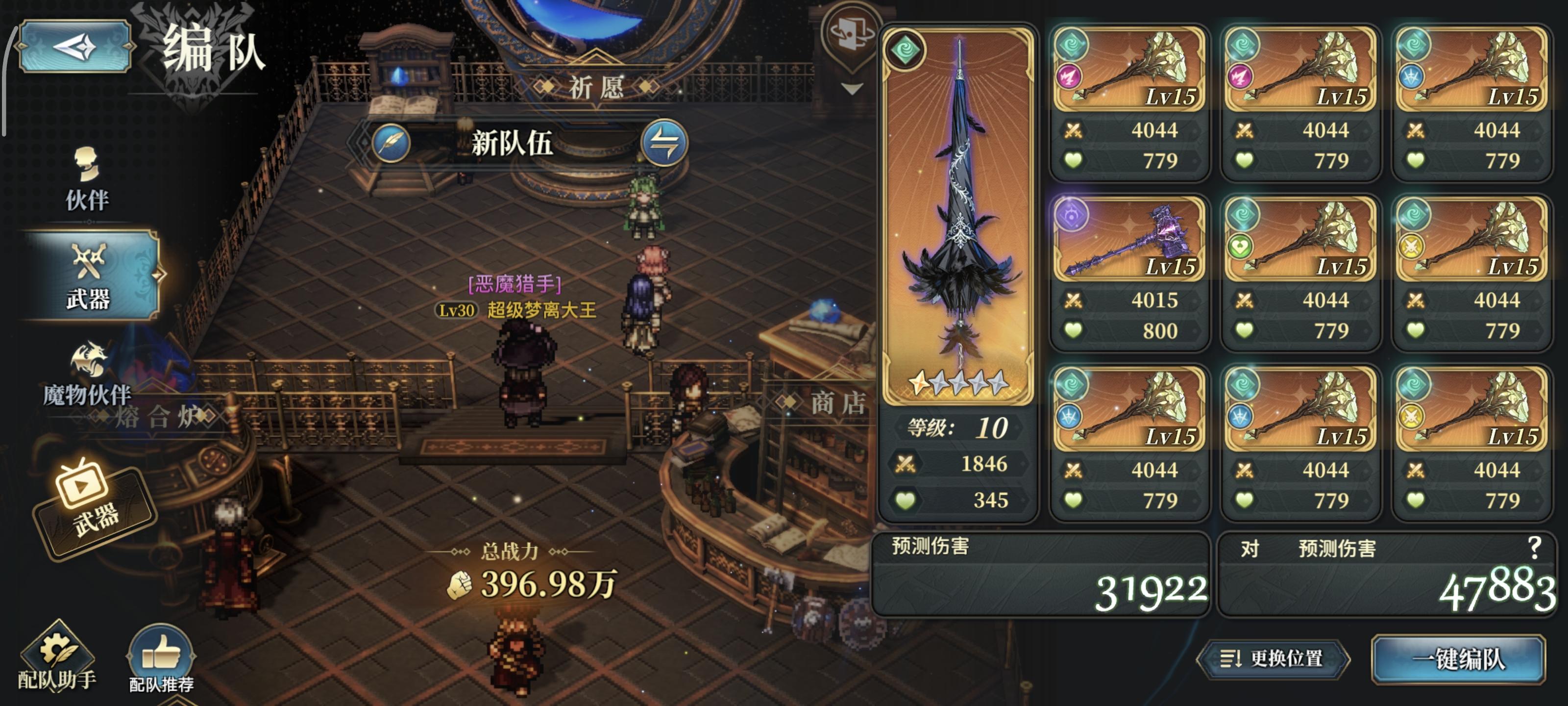 裸战接近400万,卡加成800万,队伍武器已成型,魔物今天刷了整整300次只能刷成这样,理想状态应该是两只满级树一只满级老王和一只满级属贵,明天又要重新刷,头痛。