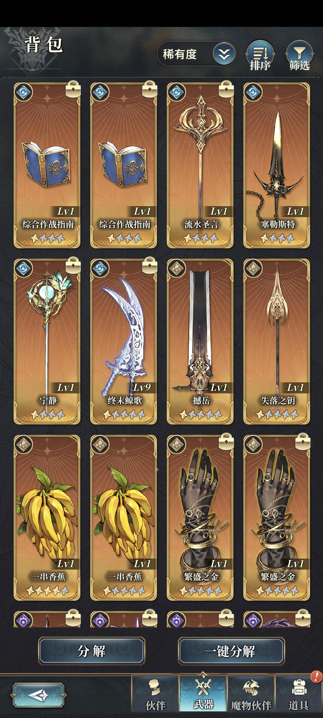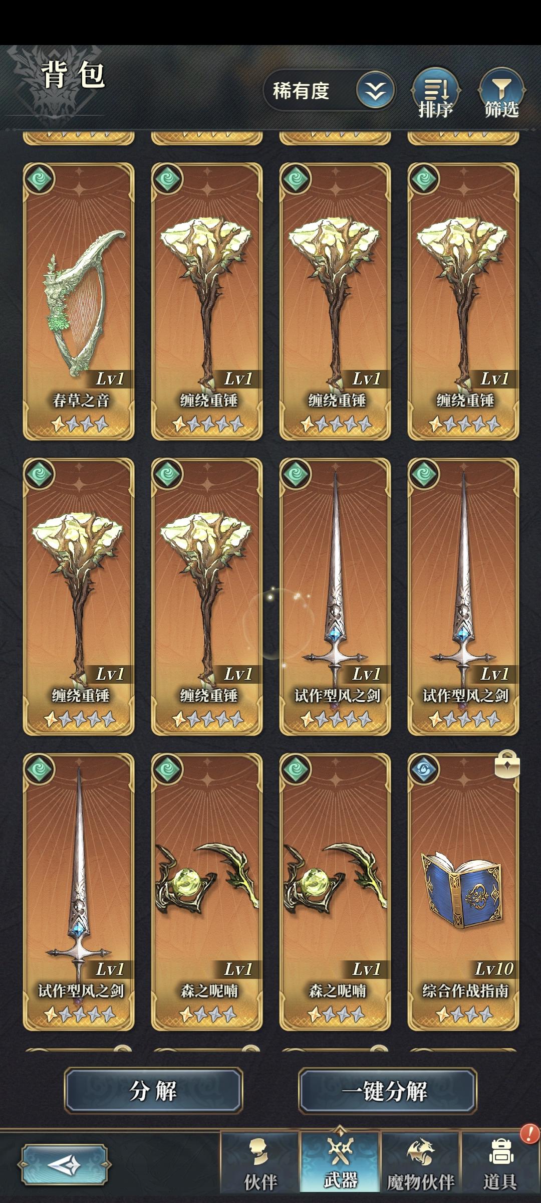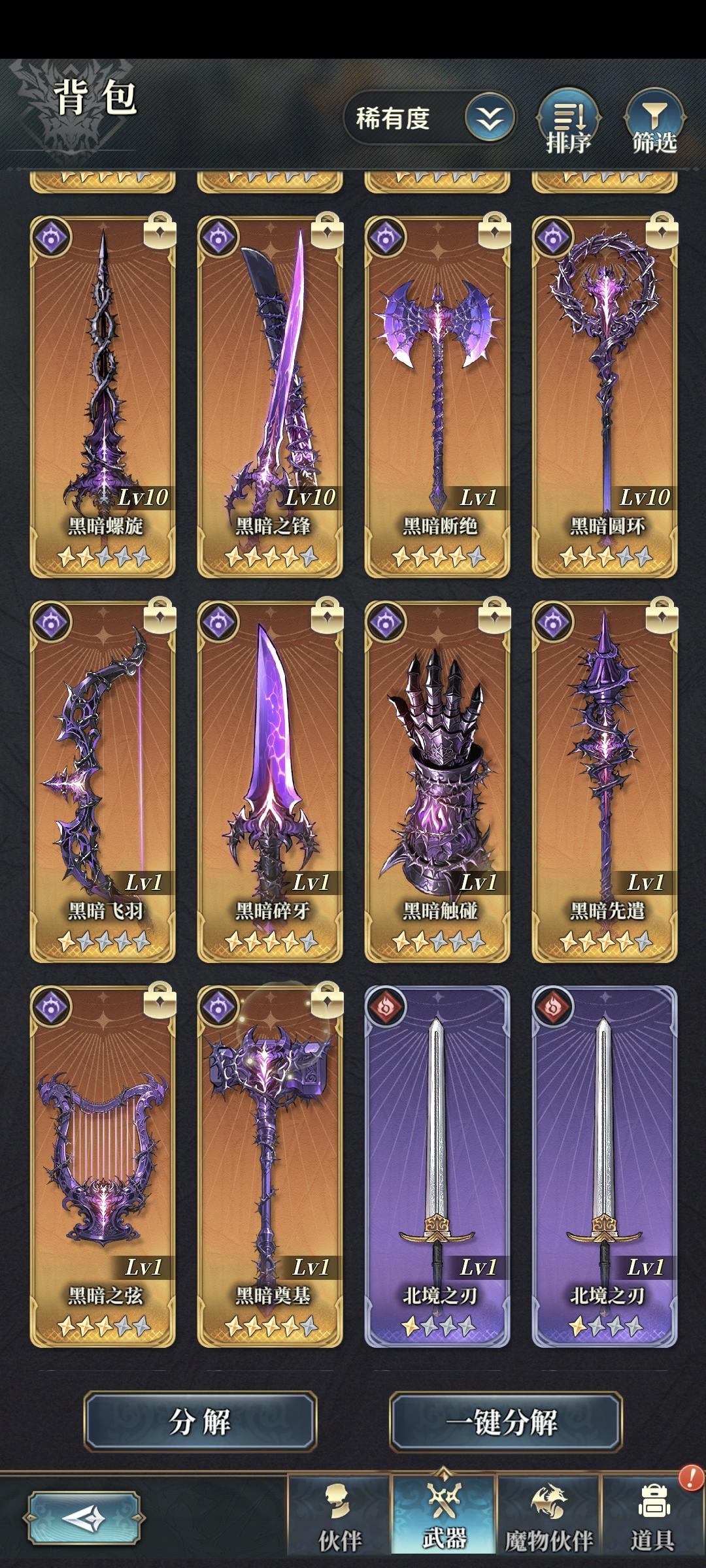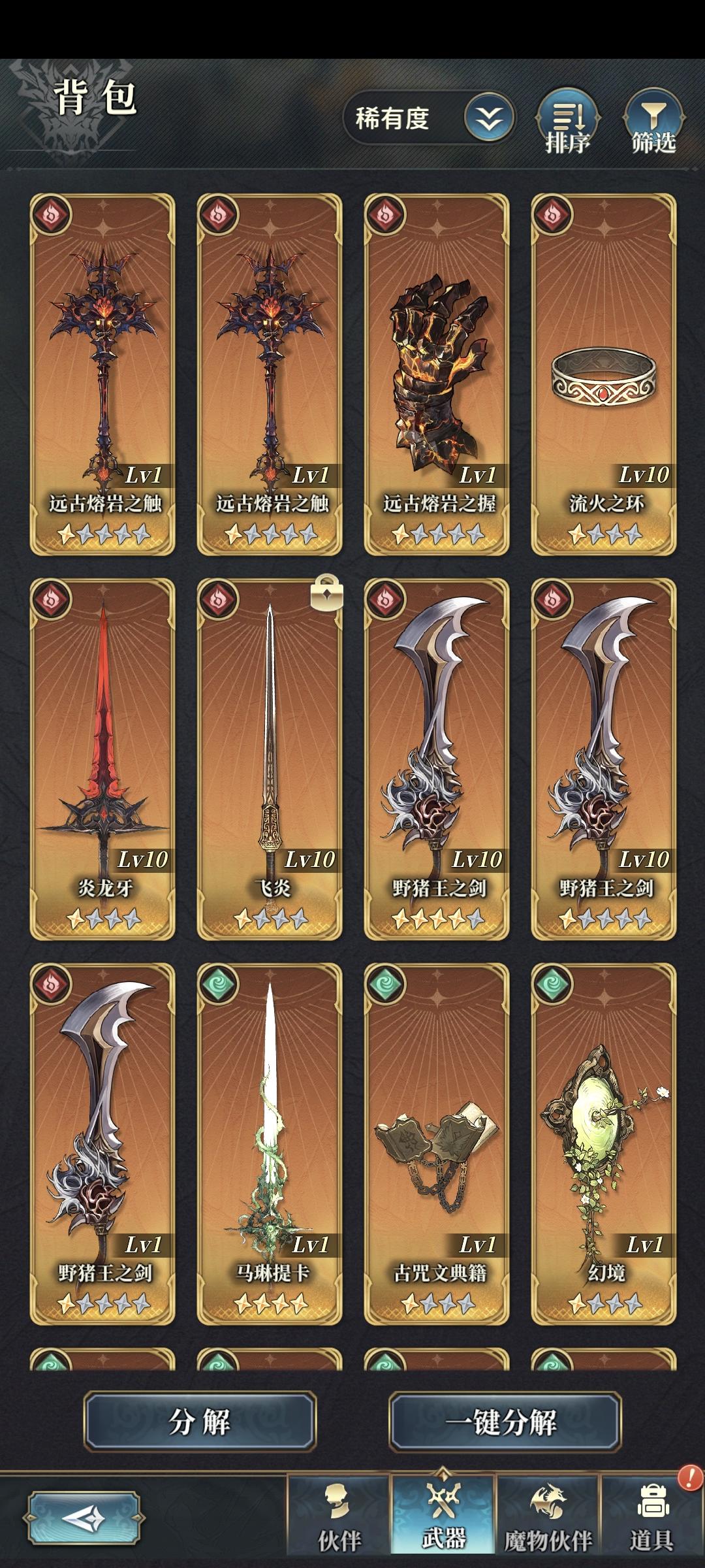 圈出来的武器是未来魔加护武器盘的核心构筑武器,往往需要复数把,可以以伐木这几把武器为目标,其余武器适当保留即可并非构筑核心。魔加护构筑成型后,一般是魔加护×属性贵族的构筑方式,盘子里魔武【暴击】词条武器多时也可考虑魔×魔的构筑以追求更稳定的火力。