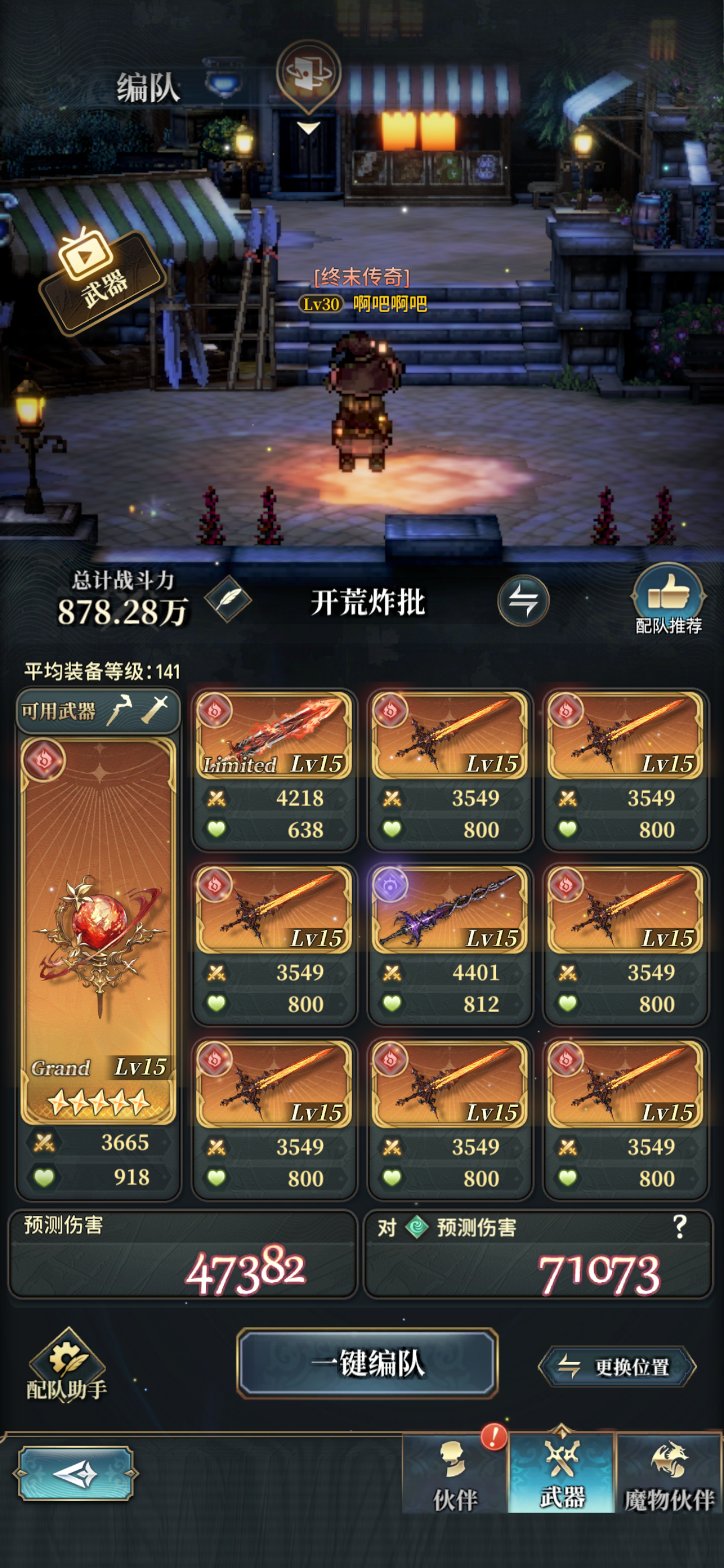 群里大佬教的 便宜好用:主手魔武附魔技伤 7把剑 1把黑叔叔剑:最后一个位置可以带 火剑,火lm1,火lm2(这三把测试下来伤害差不多) 或者带天人武应该也行.