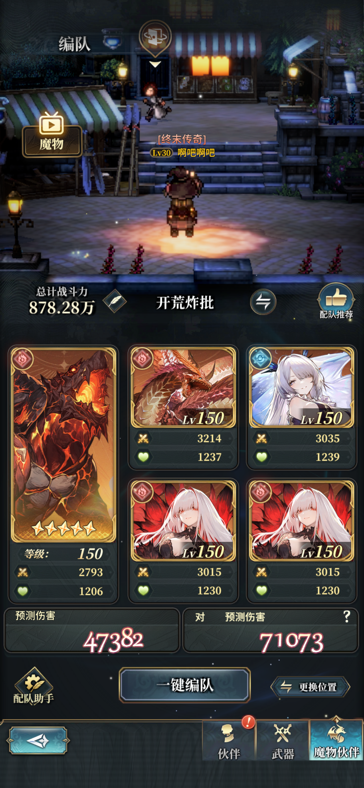 野队全自动、飙车全程跳!嘎嘎乱杀!目前版本,土队老王、方阵武器数据后备成员随意,有首充就首充+机神【方阵武器盘】【野队挂机,暴毙就带2把血斧头】【开场慧眼Buff:土打暗触发有利属性】【慧眼不触发六天翼,不带六天翼(天司)】【附魔:魔武和黑爷的附魔冲突、机神独立】【黑爷爷拳套、斧头没有,就带黑叔叔剑】【攻击:攻击=面板*神攻*魔攻*EX攻】【方阵魔物盘】标记2无缝衔接土属攻,