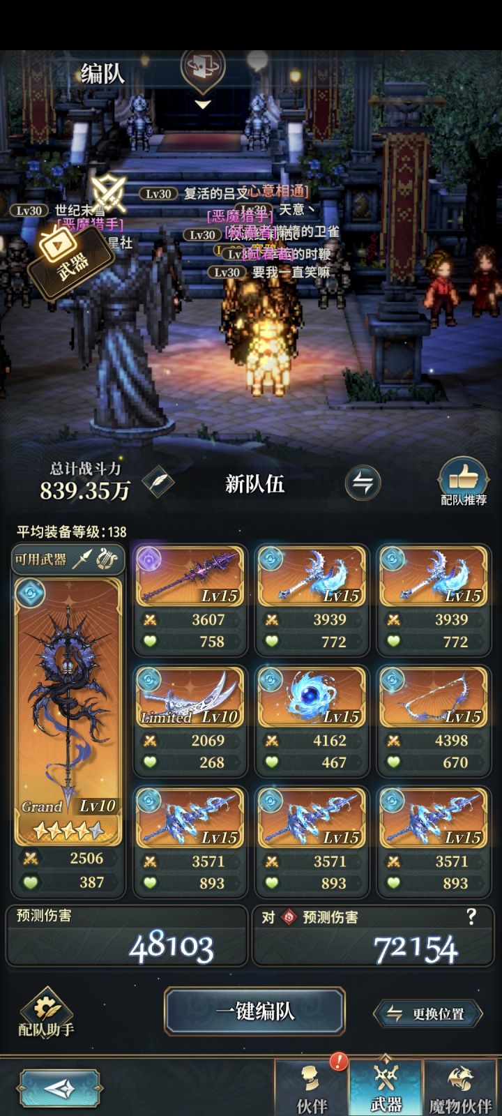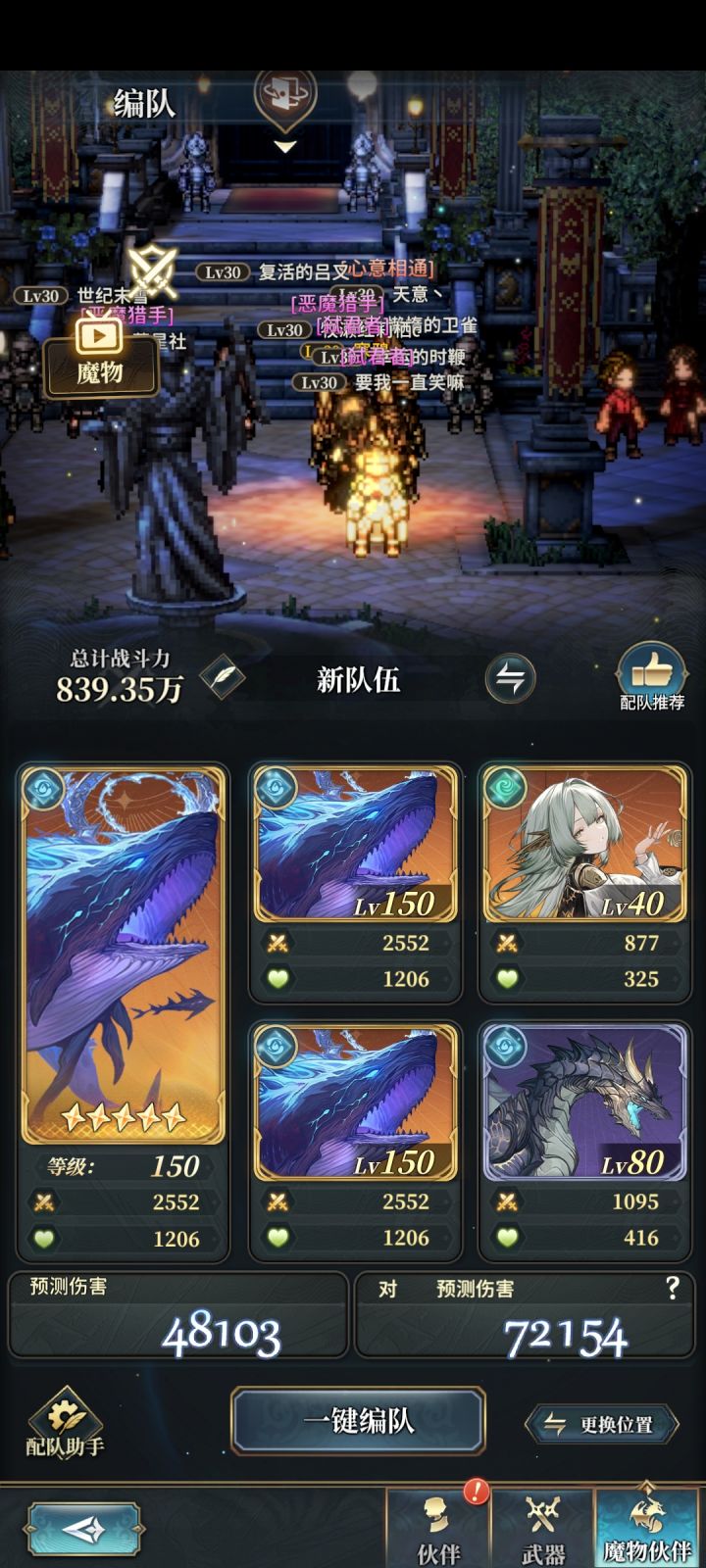 盘子如图所示,没有魔武的就用水枪,魔物一定要带sr水龙小名刀。 进去可开自动,魔物嫌麻烦也可自动。不说全自动,因为想稳一点的可以手动第二回合开先锋,格挡跟别的角色的减伤。之后一直全自动备用角有啥用啥不用在乎太多。主要是让先锋打伤,其次队友配置不高可能会50血前死掉,当然无伤大雅,一个复活的事就可以打到低。魔物有龙放龙没龙看你有啥用啥。 此盘用的默认技能不用调轴,你想手操打更多的伤害可以操作奥