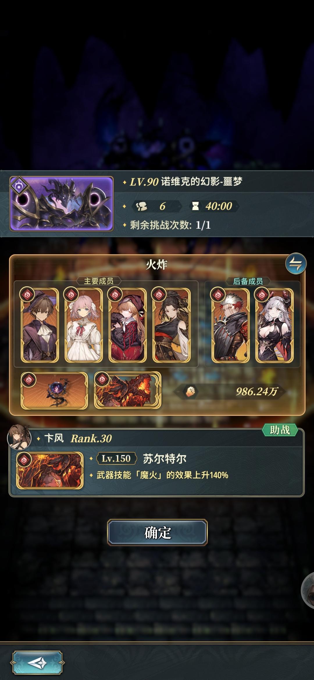 首先这个本要至少要1风1土,火可要可不要水越多越好。另外暂时通关不了的朋友也别着急,预计是会下修或者优化组队机制的,而且神威魔武系列武器(方阵法)暂时还卡材料是制作不了,幽冥武器(u武)基于通过率太低也不好农暂时可以先歇。我这个配置不需要用到卡池武器和ssr魔物,有一个满级的飞龙会舒服不少(召唤未必要和我一样摆,有啥用啥就行了),只要角色达标,双面鲸鱼即可。主角1和艾丽娅2(此时可按飞龙召唤可