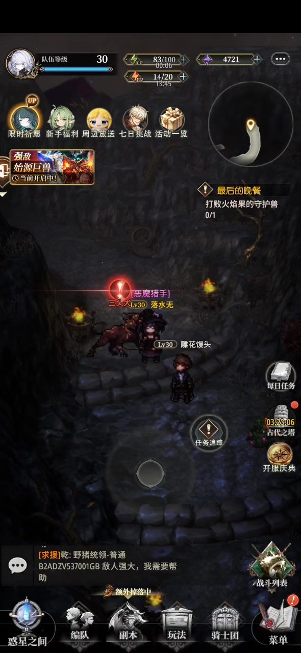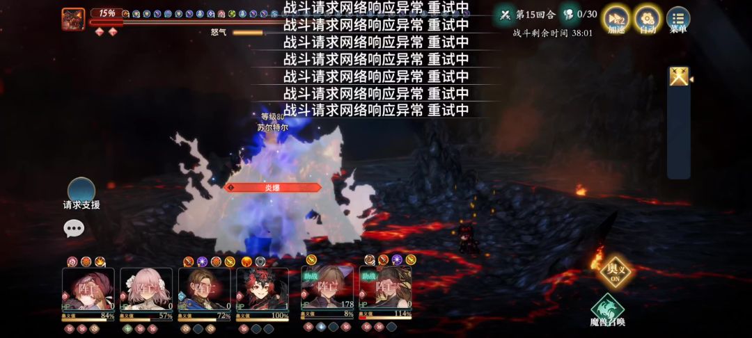 打的好好的,突然boss回家吃饭去了, Boss的人物都没了,点击技能可以点击,但是放不了技能,也不给退出,让我宛如刀剑神域的灰色退出键的即视感,后面删除游戏后台再进去,退是退出来了,就是进不去副本了,我是真没想到哈,昨天开放的那个新副本我没拿到暗锤就算了,用了13瓶红体力也算了,没想到今天开的副本,连让我打的资格都没有了,刷都不给刷了