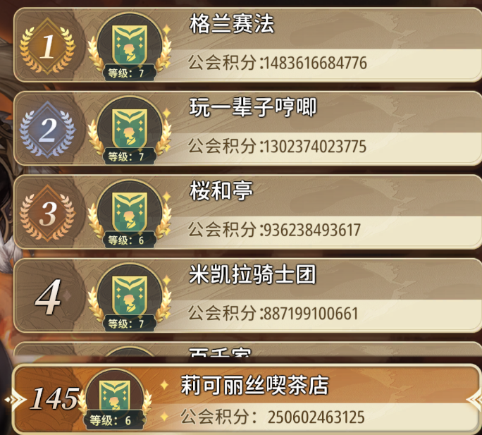 终末之战第148名(当时只有6个人打所以挤不上前列) 现在会内大青蒜 坑位多 群u肥肠活跃 群内各种gbf悠久之树老登都有 哼唧名人2001号正是出自咱们工会 每天晚上超稳黑爷爷车连发 欢迎大佬中登萌新加入喵(会战已做出1个100天人即可 萌新瘾大可放宽条件喵) 群号:1048318254