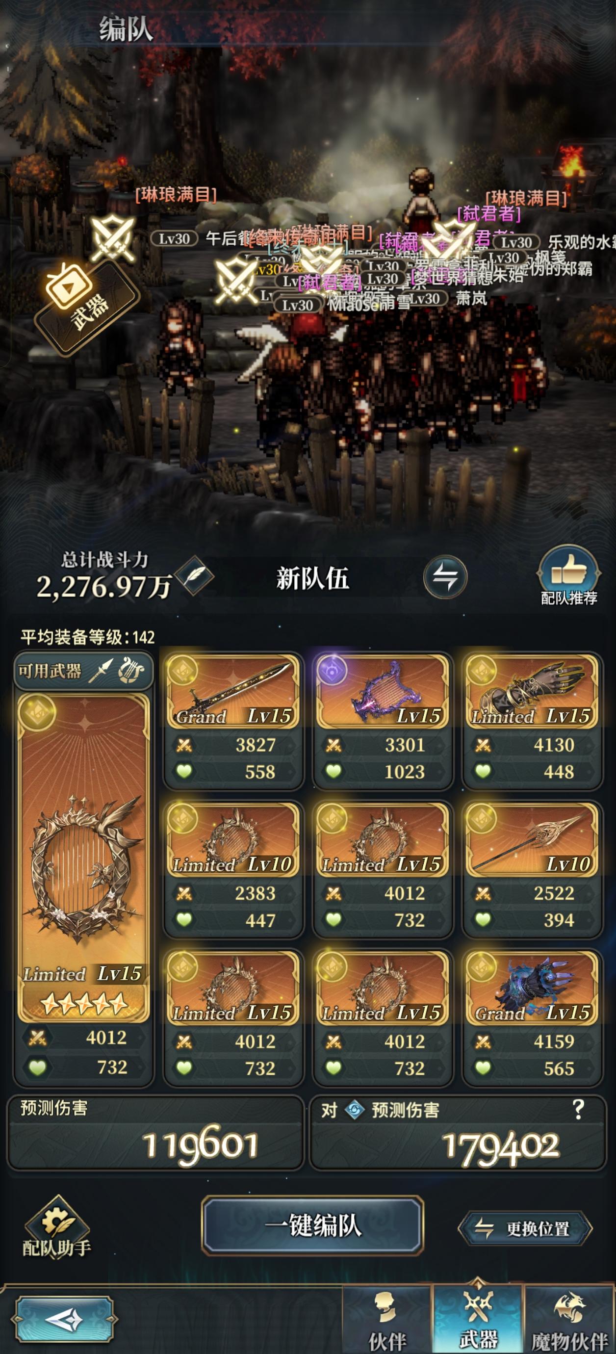 盘子如图所示,没有魔武的就用水枪,魔物一定要带sr水龙小名刀。 进去可开自动,魔物嫌麻烦也可自动。不说全自动,因为想稳一点的可以手动第二回合开先锋,格挡跟别的角色的减伤。之后一直全自动备用角有啥用啥不用在乎太多。主要是让先锋打伤,其次队友配置不高可能会50血前死掉,当然无伤大雅,一个复活的事就可以打到低。魔物有龙放龙没龙看你有啥用啥。 此盘用的默认技能不用调轴,你想手操打更多的伤害可以操作奥
