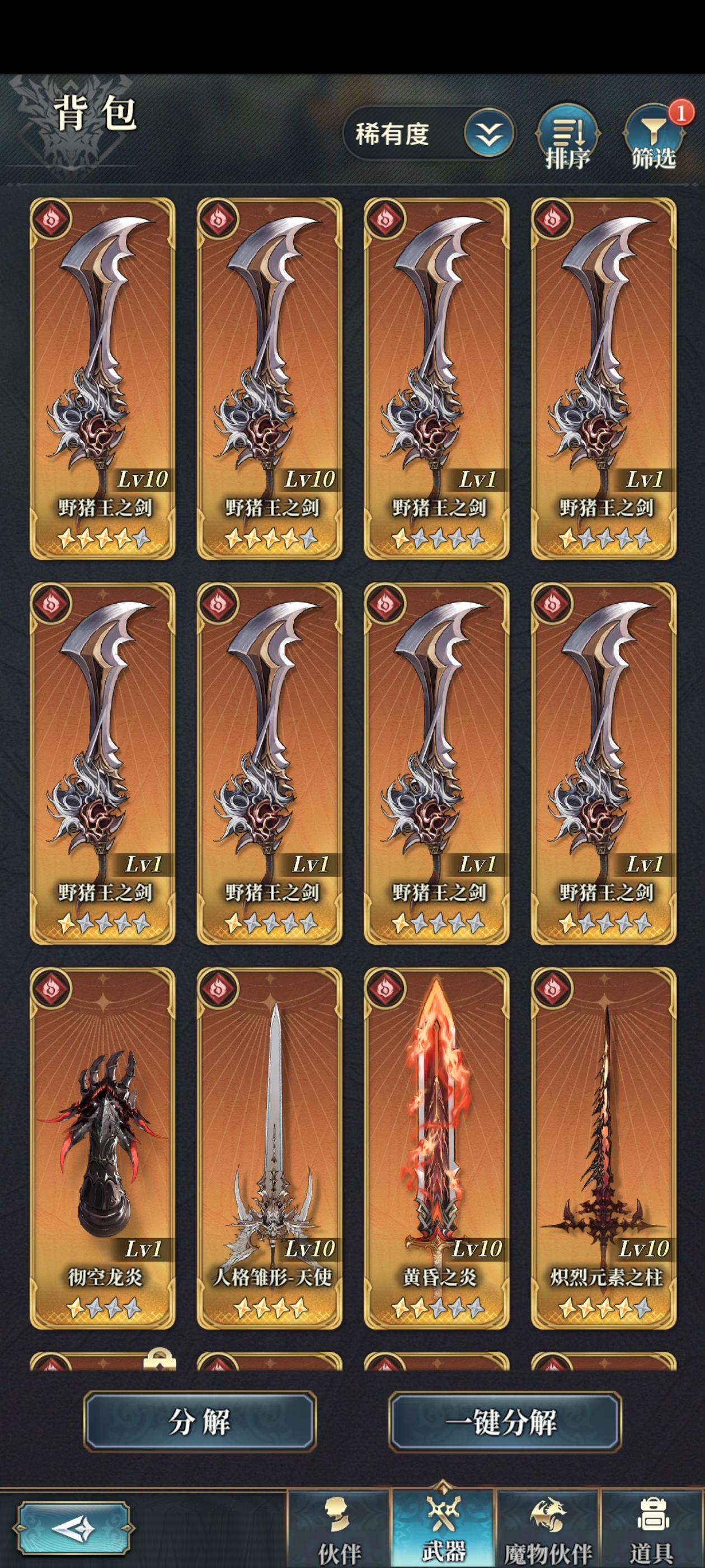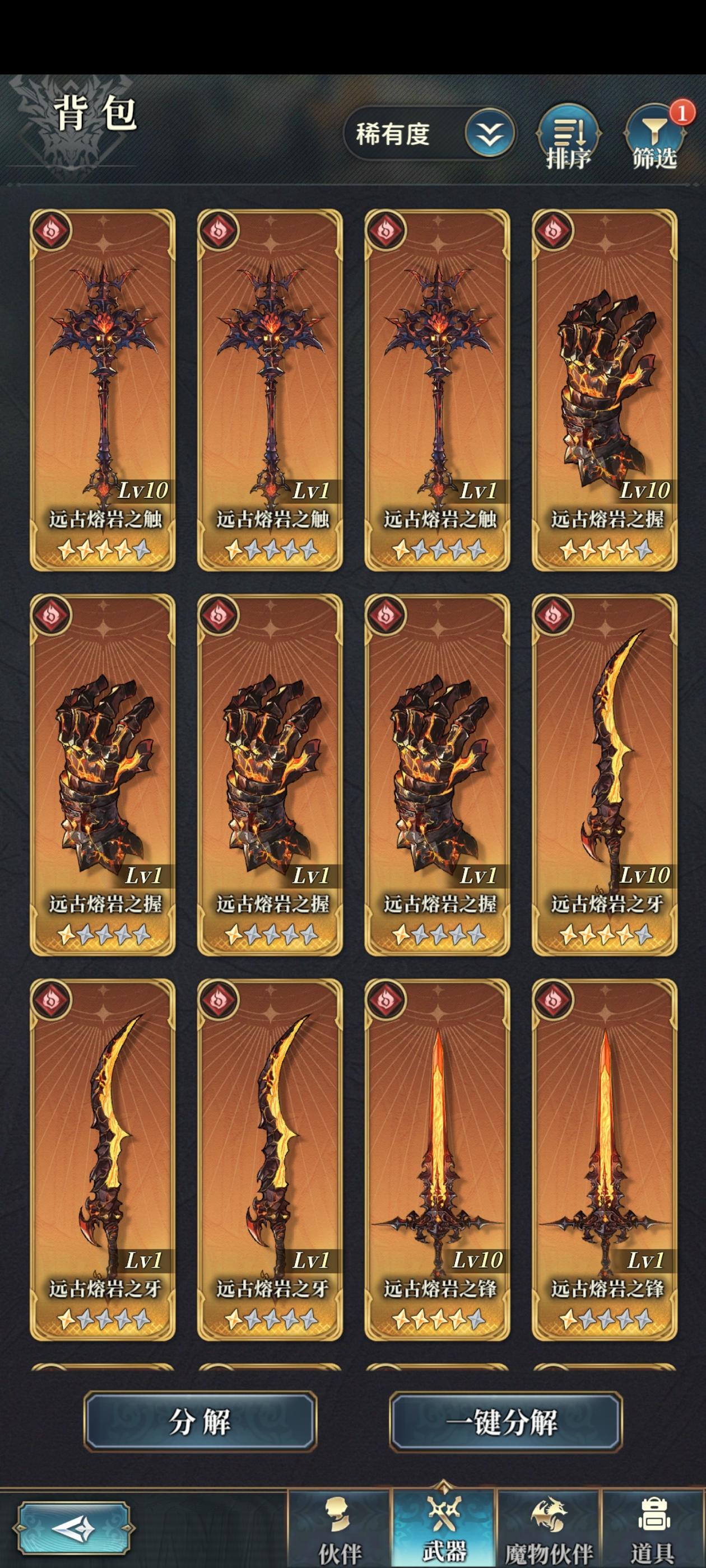 本以为来哼唧的至少都是老骑空士,奈何团里新人实在太多,还是尽量直白的说明下武器盘的构筑逻辑。一、主手和主召我们的武器盘有10个位置,左侧的是主手武器,主角的属性和奥义会根据主手武器属性和奥义进行变更。同时装备在武器盘里的武器也会提供大量的被动加成(包括主手),一把武器能不能进盘主要看的就是其被动效果。接下来看魔物盘(黑话也叫召唤石)魔物有5个位置,最左侧的为主位魔物(主召),