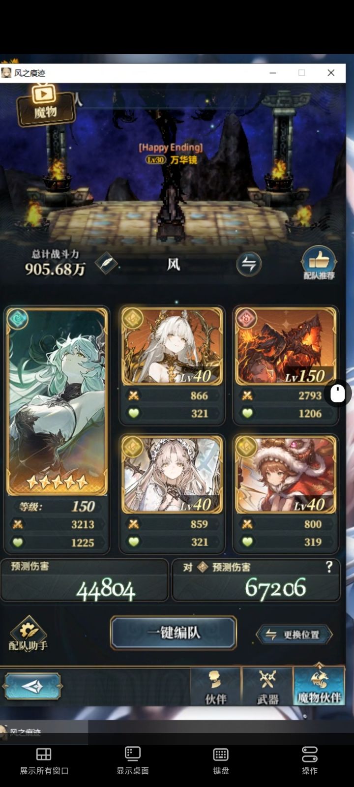 配置如图,助战双面,神武附魔全力。先把召唤石位置对准,技能轴再用默认的,然后把先锋主1、3技能删掉,年兽设置成第四回合释放,风岛主3技能提到其他伤害技能前面即可爽挂。