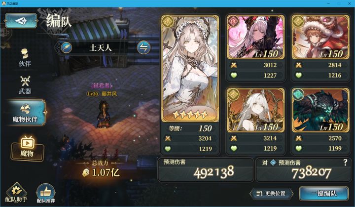 1100w刚需年兽或者自己可以配一下血量,第二回合主角可以满奥义但还会低于年兽,魔物除了火龙跟年兽不变其他带攻击力高的,魔武附魔技伤。