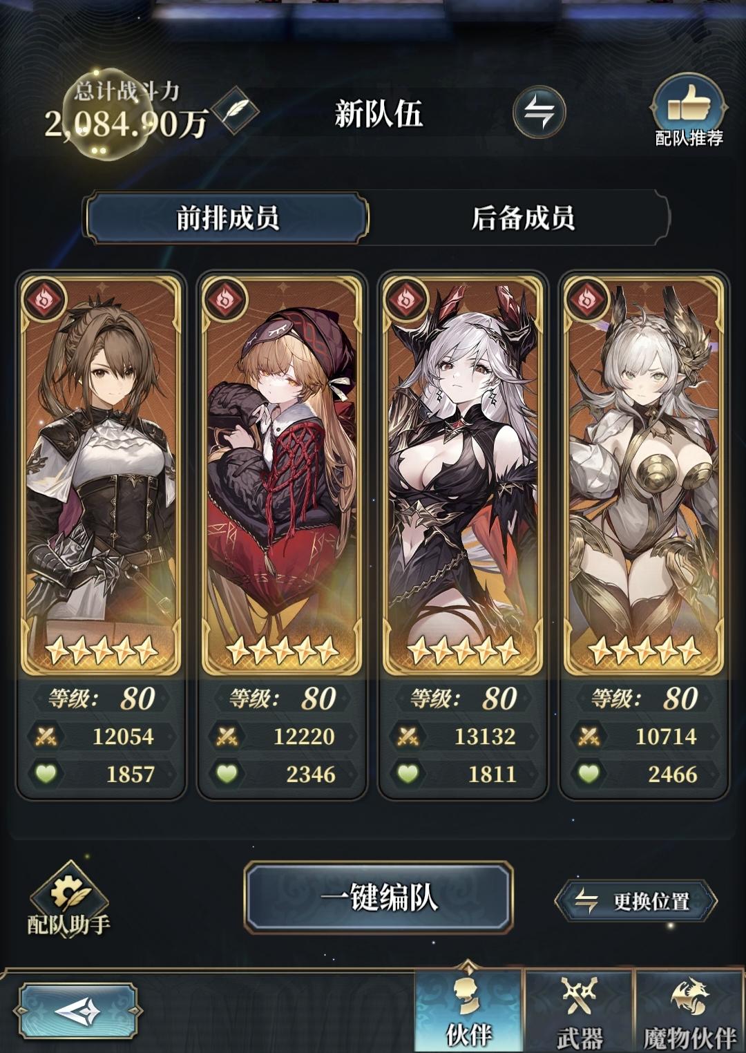 盘子如图所示,没有魔武的就用水枪,魔物一定要带sr水龙小名刀。 进去可开自动,魔物嫌麻烦也可自动。不说全自动,因为想稳一点的可以手动第二回合开先锋,格挡跟别的角色的减伤。之后一直全自动备用角有啥用啥不用在乎太多。主要是让先锋打伤,其次队友配置不高可能会50血前死掉,当然无伤大雅,一个复活的事就可以打到低。魔物有龙放龙没龙看你有啥用啥。 此盘用的默认技能不用调轴,你想手操打更多的伤害可以操作奥