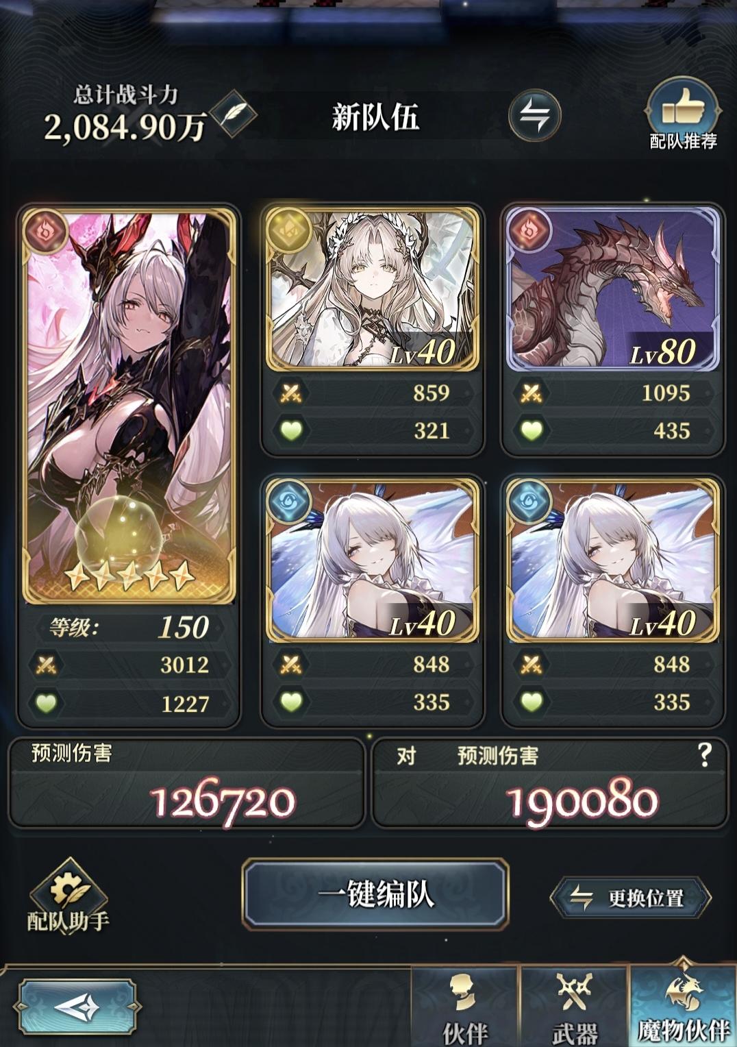 首先这个本要至少要1风1土,火可要可不要水越多越好。另外暂时通关不了的朋友也别着急,预计是会下修或者优化组队机制的,而且神威魔武系列武器(方阵法)暂时还卡材料是制作不了,幽冥武器(u武)基于通过率太低也不好农暂时可以先歇。我这个配置不需要用到卡池武器和ssr魔物,有一个满级的飞龙会舒服不少(召唤未必要和我一样摆,有啥用啥就行了),只要角色达标,双面鲸鱼即可。主角1和艾丽娅2(此时可按飞龙召唤可