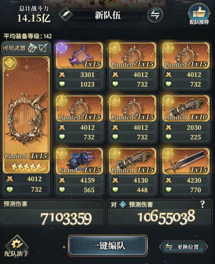 首先这个本要至少要1风1土,火可要可不要水越多越好。另外暂时通关不了的朋友也别着急,预计是会下修或者优化组队机制的,而且神威魔武系列武器(方阵法)暂时还卡材料是制作不了,幽冥武器(u武)基于通过率太低也不好农暂时可以先歇。我这个配置不需要用到卡池武器和ssr魔物,有一个满级的飞龙会舒服不少(召唤未必要和我一样摆,有啥用啥就行了),只要角色达标,双面鲸鱼即可。主角1和艾丽娅2(此时可按飞龙召唤可