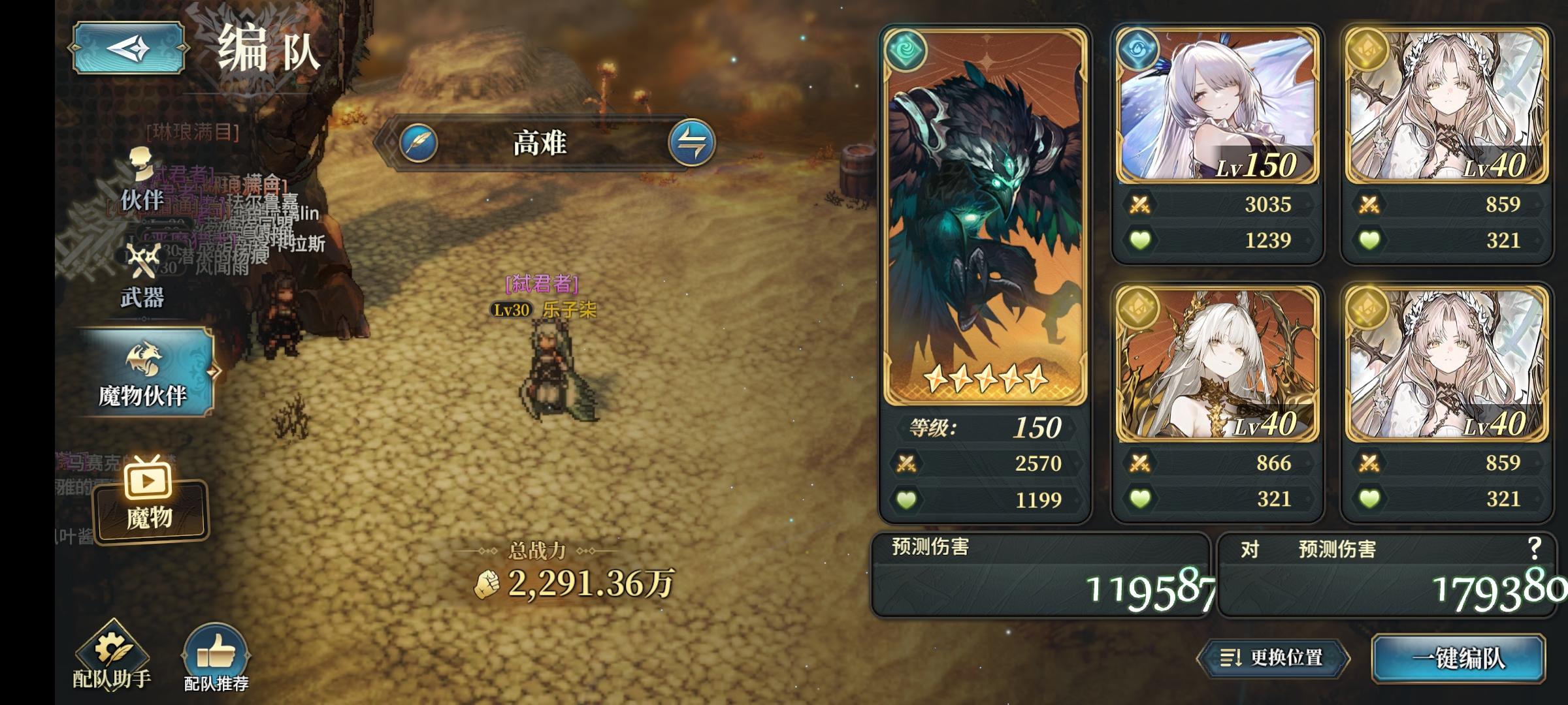 首先这个本要至少要1风1土,火可要可不要水越多越好。另外暂时通关不了的朋友也别着急,预计是会下修或者优化组队机制的,而且神威魔武系列武器(方阵法)暂时还卡材料是制作不了,幽冥武器(u武)基于通过率太低也不好农暂时可以先歇。我这个配置不需要用到卡池武器和ssr魔物,有一个满级的飞龙会舒服不少(召唤未必要和我一样摆,有啥用啥就行了),只要角色达标,双面鲸鱼即可。主角1和艾丽娅2(此时可按飞龙召唤可