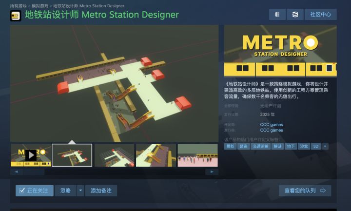 《地铁站设计师》是一款策略模拟游戏,你将设计并建造高效的多层地铁站,使用创新的工程方案管理乘客流量,确保数千名乘客的无缝出行。正在全力开发中!预计2025年上线Steam平台,如果对游戏感兴趣,请将游戏添加到愿望单,这对我们非常重要。Steam链接:https://store.steampowered.com/app/3104660/_Metro_Station_Designer?utm_sou