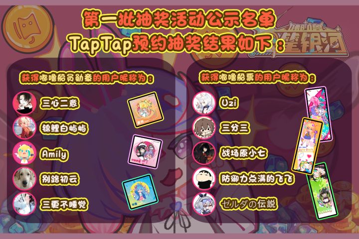 各位船员们久等啦,我们的抽奖活动已经顺利结束,感谢大家的支持和参与。现在公示中奖名单:恭喜以上小船员们,获得我们的奖品。请中奖的幸运小船员们添加我们的官方qq群611151855,将平台id截图并带上地址信息私发给露西船长,我们会在核实后的7个工作日内发放周边奖励!