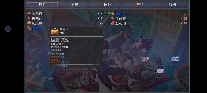 为什么聚灵丹那些加数值的丹药用不了啊,这药到底要怎么用啊?我精神不够啊,用不了10万年道体,又不让我嗑药,就让我一直卡在十级。还有这个游戏前期女角色是真的稀有呀,加上男主五个人里面就有四个男的,不知道是不是因为这个游戏女生玩的人比较多呀?