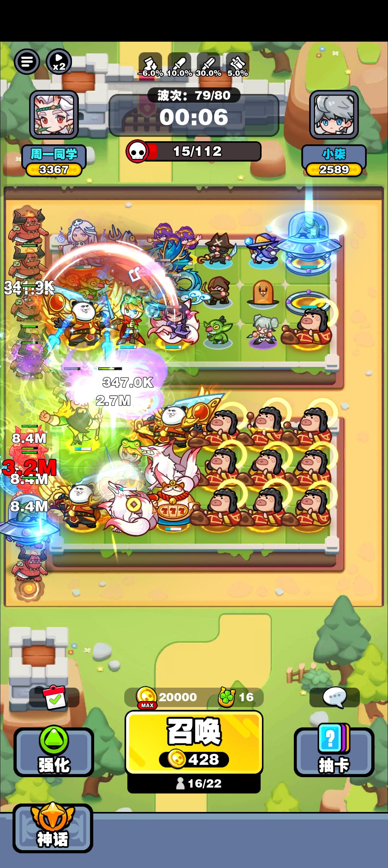 4.固定难度。这个游戏的核心玩法是合成塔防,我觉得运营是非常重要的,开局其实我觉得做的没什么问题,但是后面怪的血量应该是成指数翻倍的,我感觉像是数值代码的堆叠,然后玩家的棋子也是一样的数值堆叠,完全可以固定攻击与血量,这样不仅可以稳定难度,也可以让玩家及时调整。你知道当我分了会神,回来看到怪物血量从K到M是什么感觉吗。