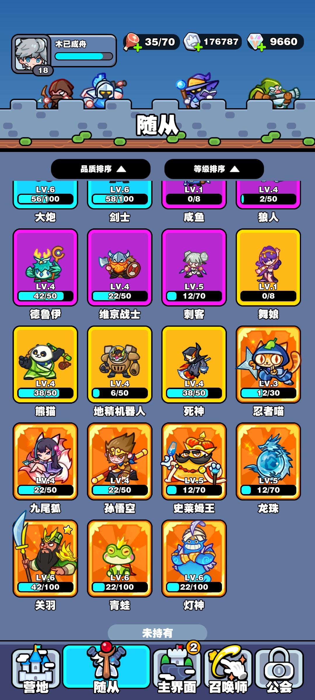 神话随从: 随从升级不同于隔壁的万能碎片,获取难度低,但是升级难度较高,每个随从等级需要单独升级,资源是有限的(钻石),由于目前还没有足够的途径获取钻石的原因,平民玩家的钻石不能在黑市随便花,要尽量优先抽取和升级随从,希望后续官方会多出活动。青蛙不同于隔壁的平a类型神话,在这里因为飞升概率问题只能作为副c,目前游戏还没有纯粹的平a属性的角色,往往游戏后期需要召唤多个输出位的角色。目前随从升级外增