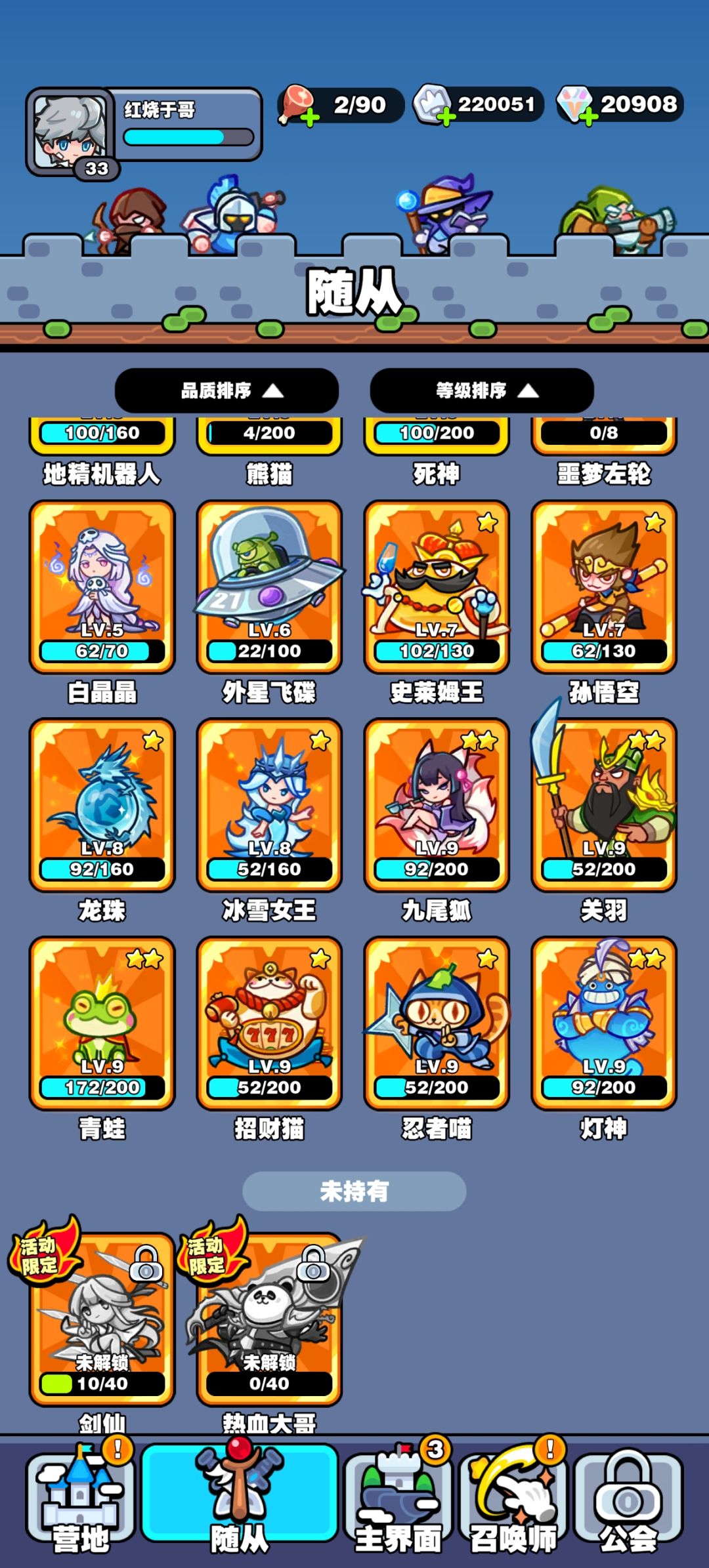 神话随从: 随从升级不同于隔壁的万能碎片,获取难度低,但是升级难度较高,每个随从等级需要单独升级,资源是有限的(钻石),由于目前还没有足够的途径获取钻石的原因,平民玩家的钻石不能在黑市随便花,要尽量优先抽取和升级随从,希望后续官方会多出活动。青蛙不同于隔壁的平a类型神话,在这里因为飞升概率问题只能作为副c,目前游戏还没有纯粹的平a属性的角色,往往游戏后期需要召唤多个输出位的角色。目前随从升级外增