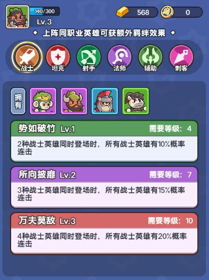 亲爱的团长们,随着探险的深入,我们遇到了多位有着不同超凡本领的冒险伙伴!让我们一起来看看怎样搭配才能最大幅度的发挥他们的本领吧~羁绊是阵容搭配的核心因数,让英雄间形成羁绊,可以产生更高伤害效果,让通关变得更容易,下面,我将介绍几种常用职业羁绊的英雄搭配: 羁绊的决策核心就是以最小成本使上阵英雄产生羁绊效果,从而带来额外的增益战士:孙悟空+关羽 搭配说明:兼顾对群、对单伤害,孙悟
