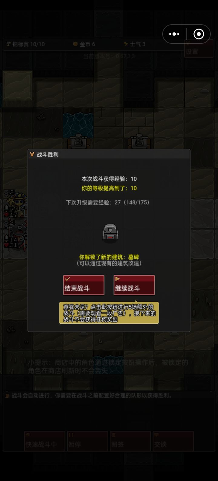 ccccch : 我在这里写几个装备希望可以被采用, 1黄金锄头,(一本),若装备者在战斗结束后仍存活,获得1金币。 2长矛 ,(六本)攻击时对一列敌人分别造成70%,25%,15%的攻击伤害,向下取整。 3钢甲:(三本):减少20%收到的伤害,向下取整(避免在低伤害情况下比盾强)。 4防空炮:(5本)减少6点远程伤害,含技能类远程。 5,反甲:(2本)将收到伤害20%反弹,向下取整,至少1。 6锁链:(4本):攻击后有40%概率再发起一次攻击(允许后排跟伤害)。7大剑:(2本)攻击时将攻击伤害平均分给每一个敌方前排,向上取整。 8布斗篷:(1本)受攻击时减免4点伤害,限一次。9,金盾(4本):受伤时减少4点伤害,10邪神真眼:(6本)同伴攻击时,进行协同攻击,造成20%攻击伤害