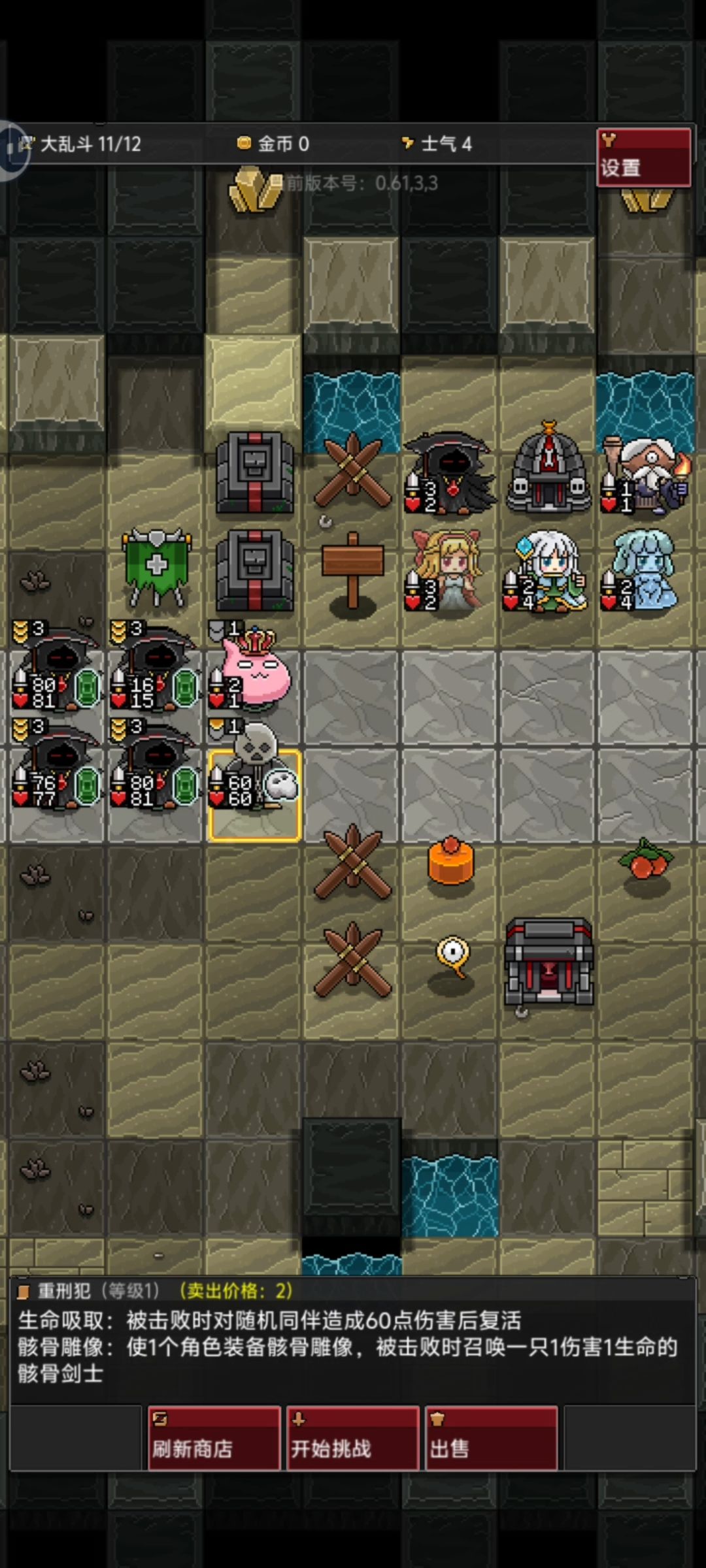 如图,一个史莱姆带苹果外加两个100恶灵启迪,基本能杀5个100,降级反制召唤弹幕,倒数第二个死神会逐渐成长到100,基本上除非碰到非常强的沉默体系,基本都可以碰一碰。 有死神+换身材的情况下,修女、骸骨、雪女这些为功能怪提供的成长体系完全比不了一点。 运营思路:还是按照基本套路等本上3,然后直接上6。(我的情况是带着几个经济怪,前两回合不掉血,4血上6本带两刷) 开始刷死神和荒漠领主,荒漠领主一