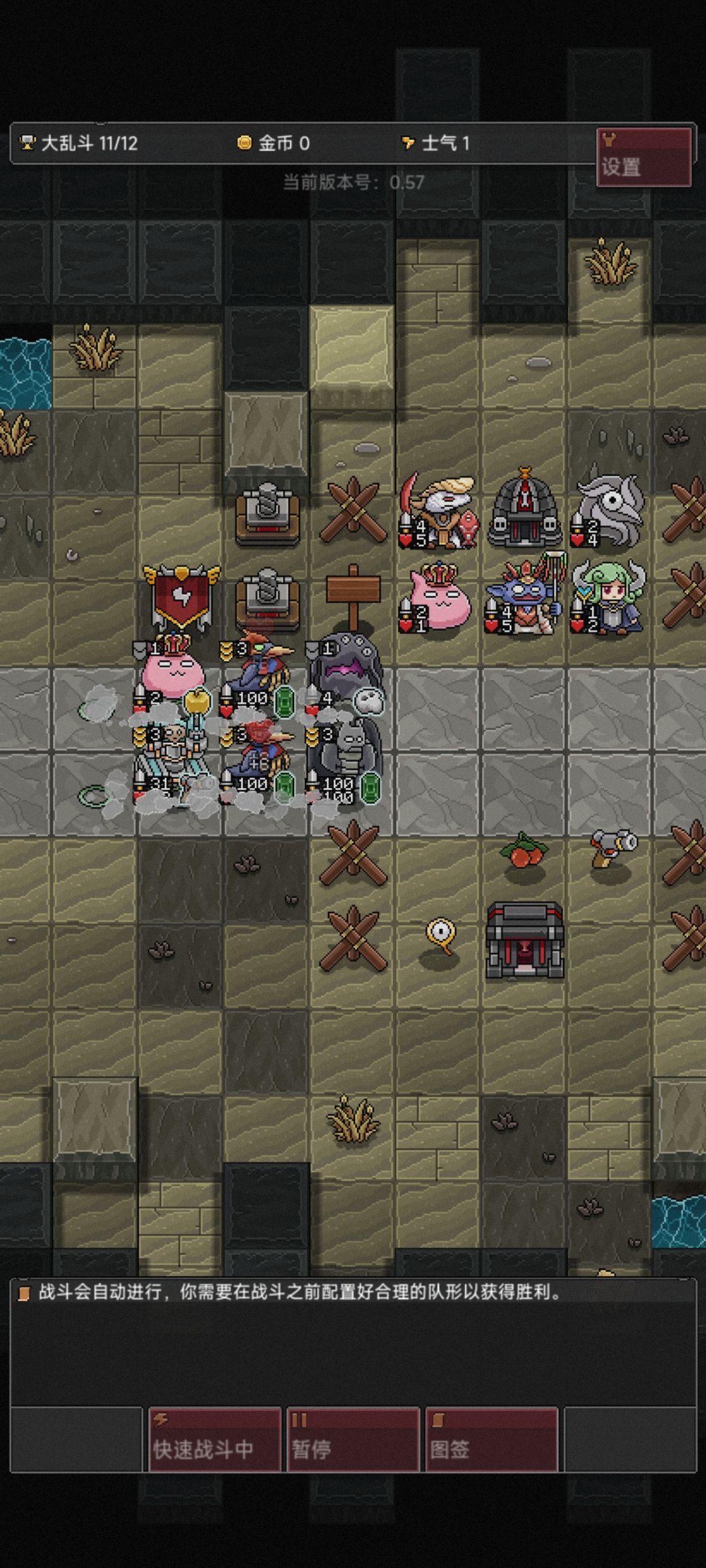 开局升级商店, 二级拿猫妖 ,过度用雪怪大白 三级拿巨犬和幽灵公主, 四级拿沙虫 五级拿魂兽和恶灵,或者老树精 六级拿六号机器人 也就是最好的是开局手动升二级 自动打到三级 然后直接手动升级4,5 最后自动到六 升级金币一共需要24
