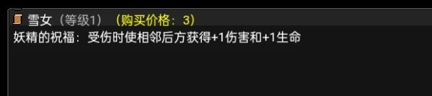 雪女套盾,坟场回合结束对最前排造成三点伤害,因为有盾所以就只受一点伤害,两个坟场就是后面那个单位每回合永久+6/12,就是雪女自身会减一点生命上限最好搭配羊妖提升生命值,任何需要高属性撑面板的都能用这个套路快速成长。