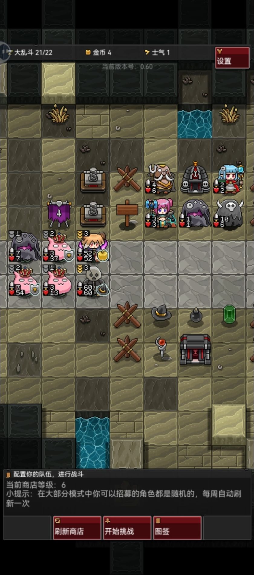 22胜最后剩3命 建筑前期采矿,中期换灵魂塔(别小看这2*2点伤害,那些复活只有1,2血的怪会被秒) 前期用修女给恶灵血加厚一点免得被对面燃灯鬼或者博士打死 哪怕遇到两个女王,只要有一个恶灵没被禁都能打(这个概率为1/2) 成型也很容易,对商店要求只要5级 灰烬换成史莱姆可能也差不多,但这周没有 博士是后面把修女下了随便换的,换女王什么的或许更好