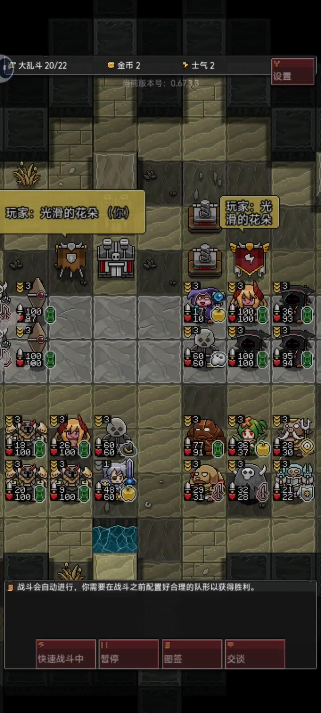 ✍🏻建议:开局攒金币升商店,除了不会损失金币的(像绿鬼、智者、三羽兔、木乃伊等),最好先不买,使有限的金币资源利益最大化。但同时也要保证士气不会下降过快。每局前期可以改建建筑为闪电塔,两座闪电塔回合开始可以打掉敌方八格血,增加获胜几率。每局后期可以改建为采矿机,每回合1金币,聊胜于无。等到商店自动升到2或3级,用金币升级到5或6级,开始组建阵容。🖼️阵容:①2死神加召唤系(史莱姆王、灰烬之灵或