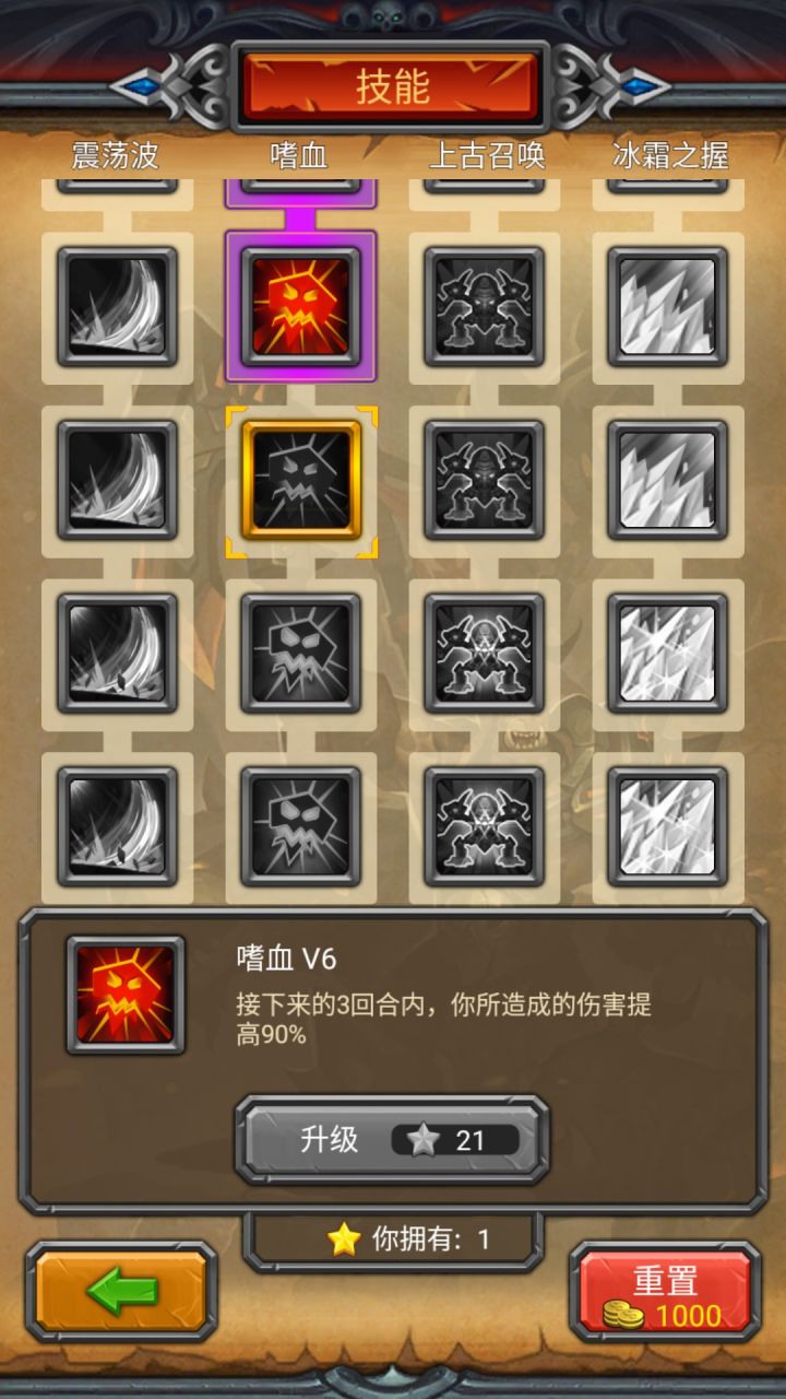 嗜血这个技能我没测试,不过上面的文字让我很尴尬,v5加成110,从v6开始下降到90,最后升级又会回升到120。中间是不是出了什么问题