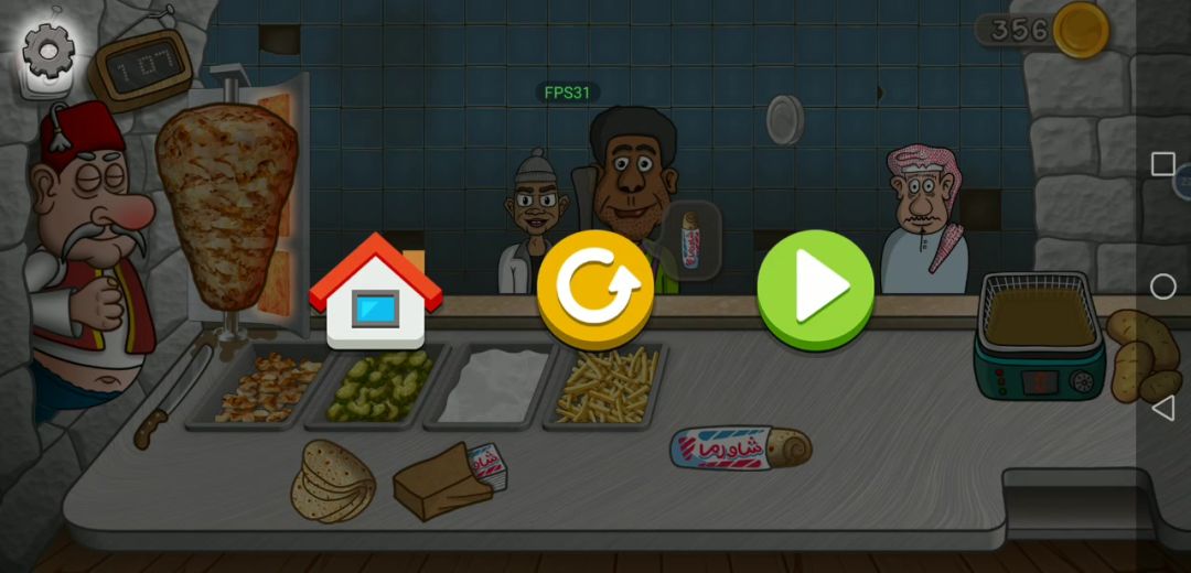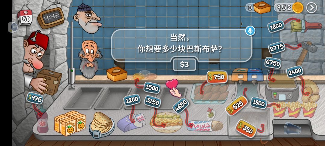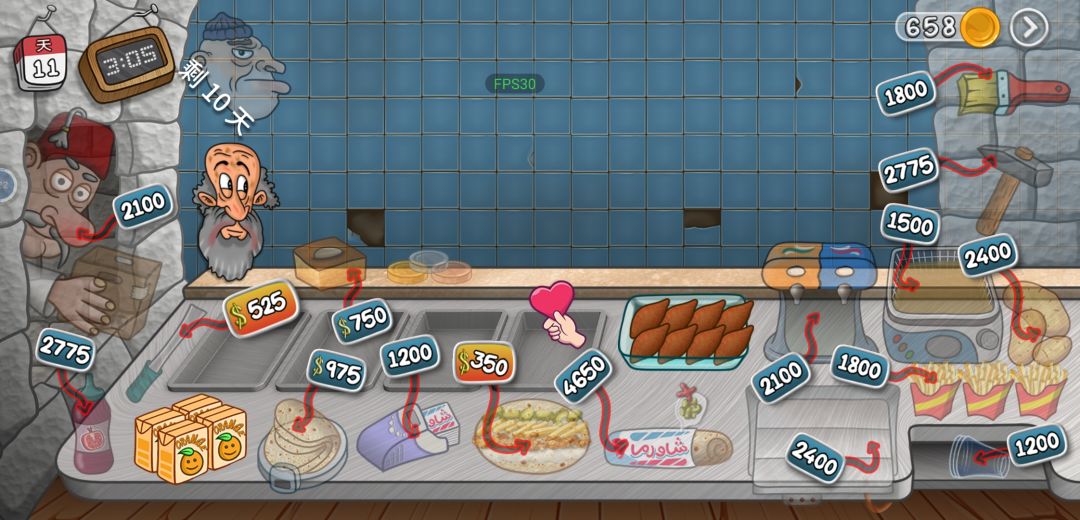 啊哈哈哈哈哈通关啦 音乐好魔性 而且难得没有广告 优先更新设备 红薯饮料可以先更新 番茄酱 薯条 可乐有钱再更新 尽量一次更新完 Shawarma客户可以选配料的那步放最后最后最后更新!!!