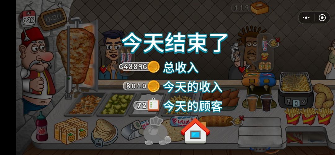 #沙威玛传奇攻略攻略 1.前期先升级工具,自动切土豆→店员补货→自动卷饼→自动包装→自动切肉和炸土豆,可以都先升级一次,然后解锁橙汁,攒多一点钱把烤架一次性拉满,这样单价能上去,一定要拉满。升级第一次之后容易烤糊,对操作影响很大。然后再拉满工具,剩下的挨个升就行了,记得把挑选配料留到最后。 2.最后攒5万金币的时候,按照顾客要求的配料来,不熟练的话很浪费时间,沙威玛里面都是需要烤肉的,可以所有都