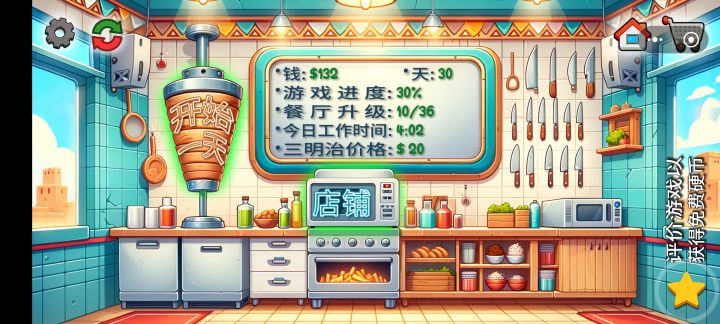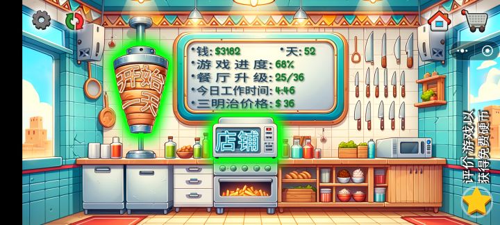 本来预计60天把餐厅升级拉满的,最后63天才拉满...我尽力了😭本着优先提高卷饼单价的原则,我的升级顺序如下(供大家参考):1️⃣橙汁(前三天来钱太慢了,只能从别的地方努努力)→2️⃣烤架(单价从7变10)→3️⃣刀→4️⃣土豆→5️⃣石榴糖浆(单价从10变12)→6️⃣刀(第17天终于攒够钱买电动的了!)→7️⃣员工(第21天攒够钱去培训员工了!)→8️⃣装修(单价从12变15)→9️⃣卷饼